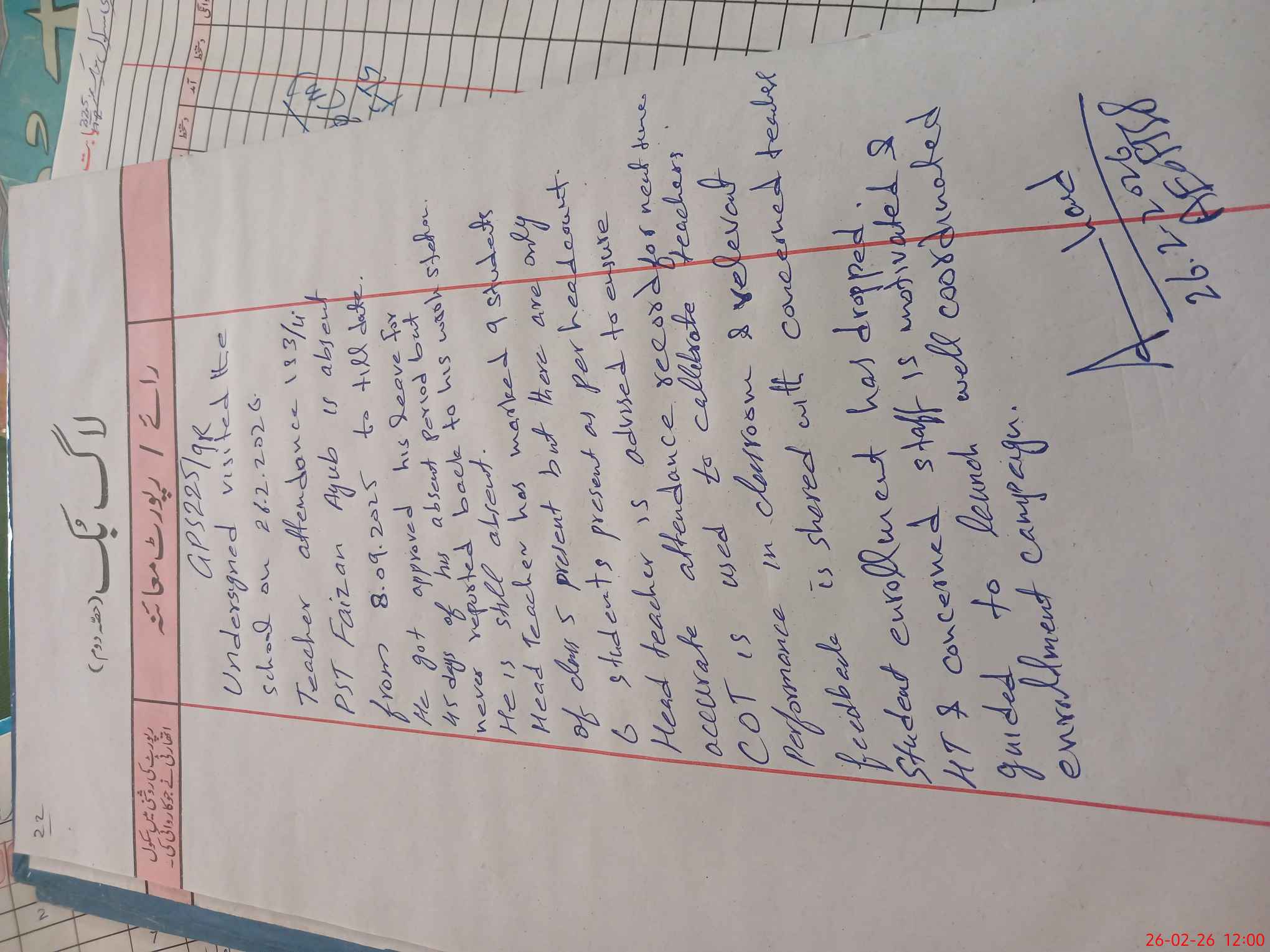 | Attendance Register | Head Teacher | MEA with School | Visit Proof |