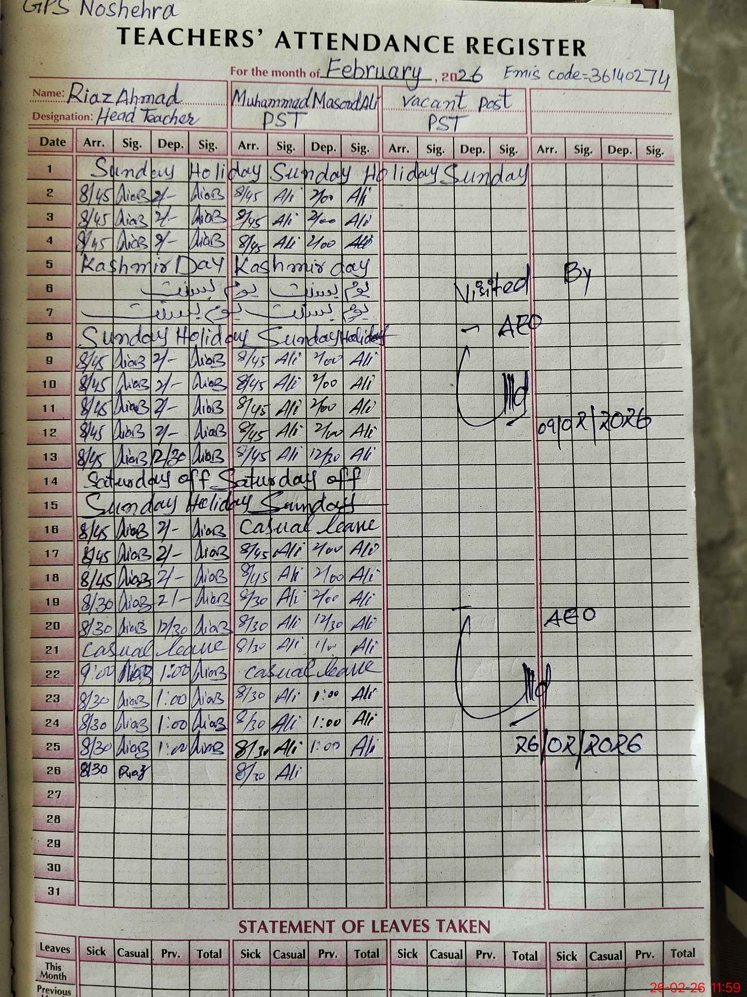 | EMIS Code: 36140274 | Name of School: GPS NOSHEHRA | |||