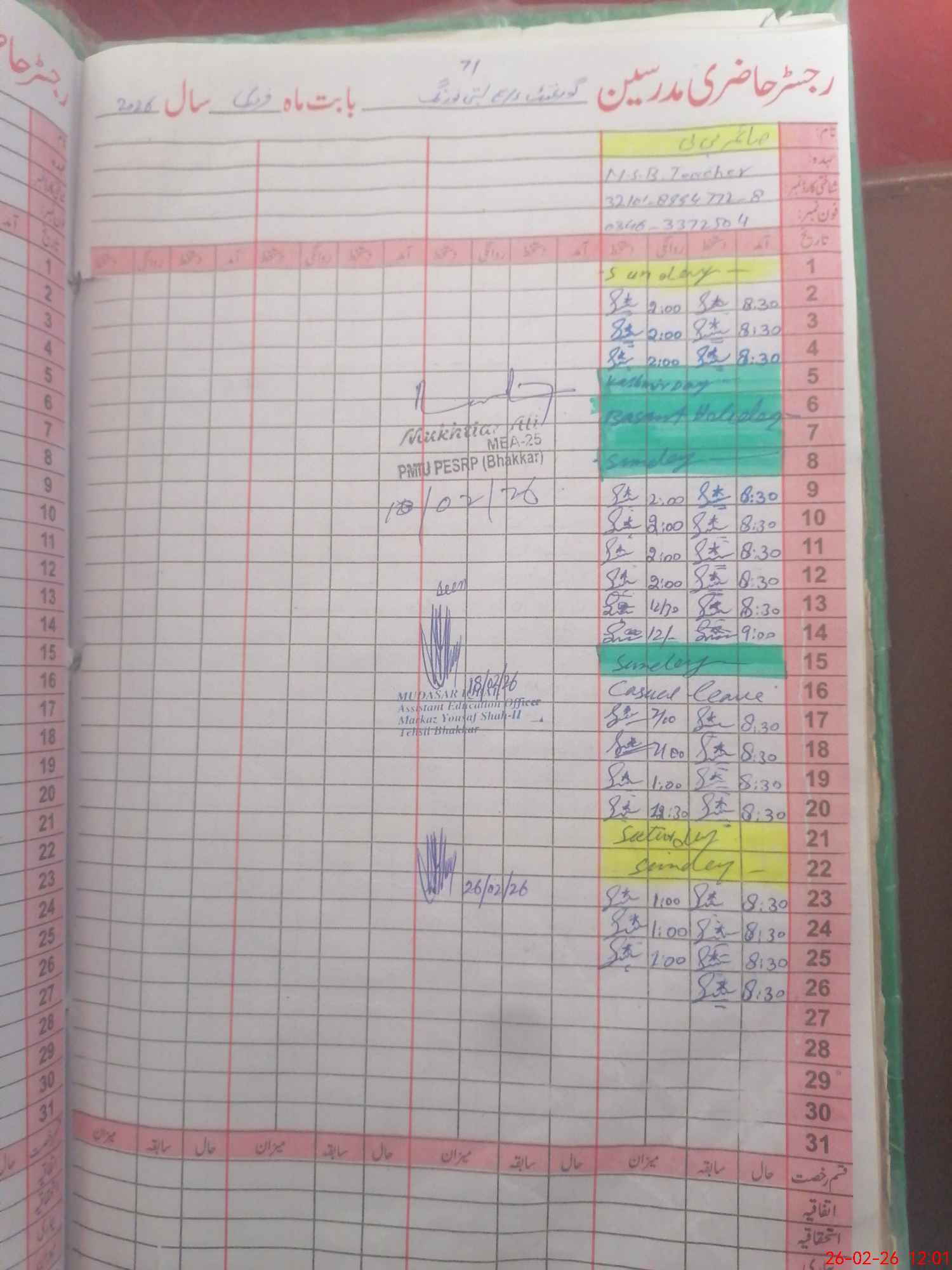 | Name: Ar**** Hu**** Kh**** Designation: (School Headmaster's/Headmistress's) SST Phone/Cell Number: 03**** |