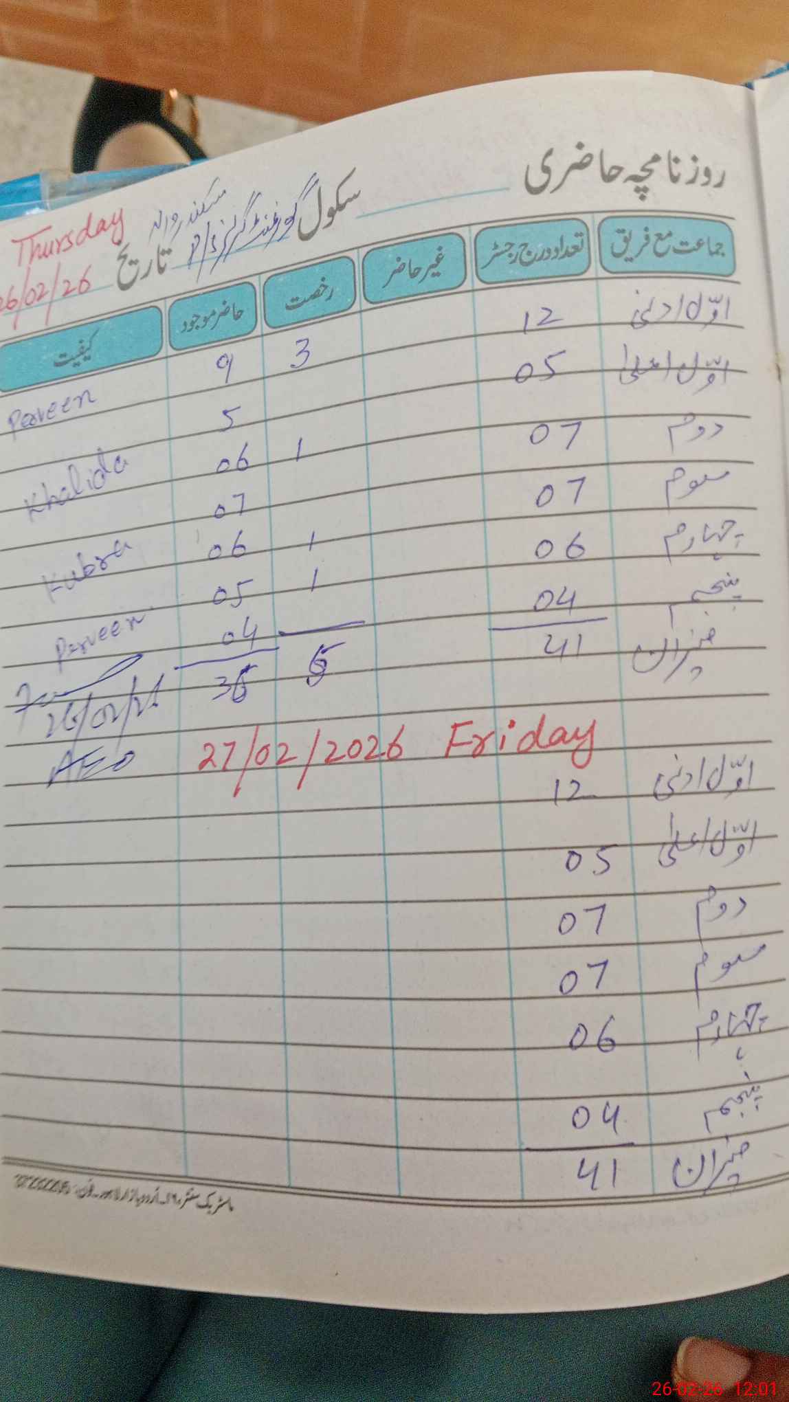 | Leave | Duty | Absent | Maternity | Medical | Ex- Pak |