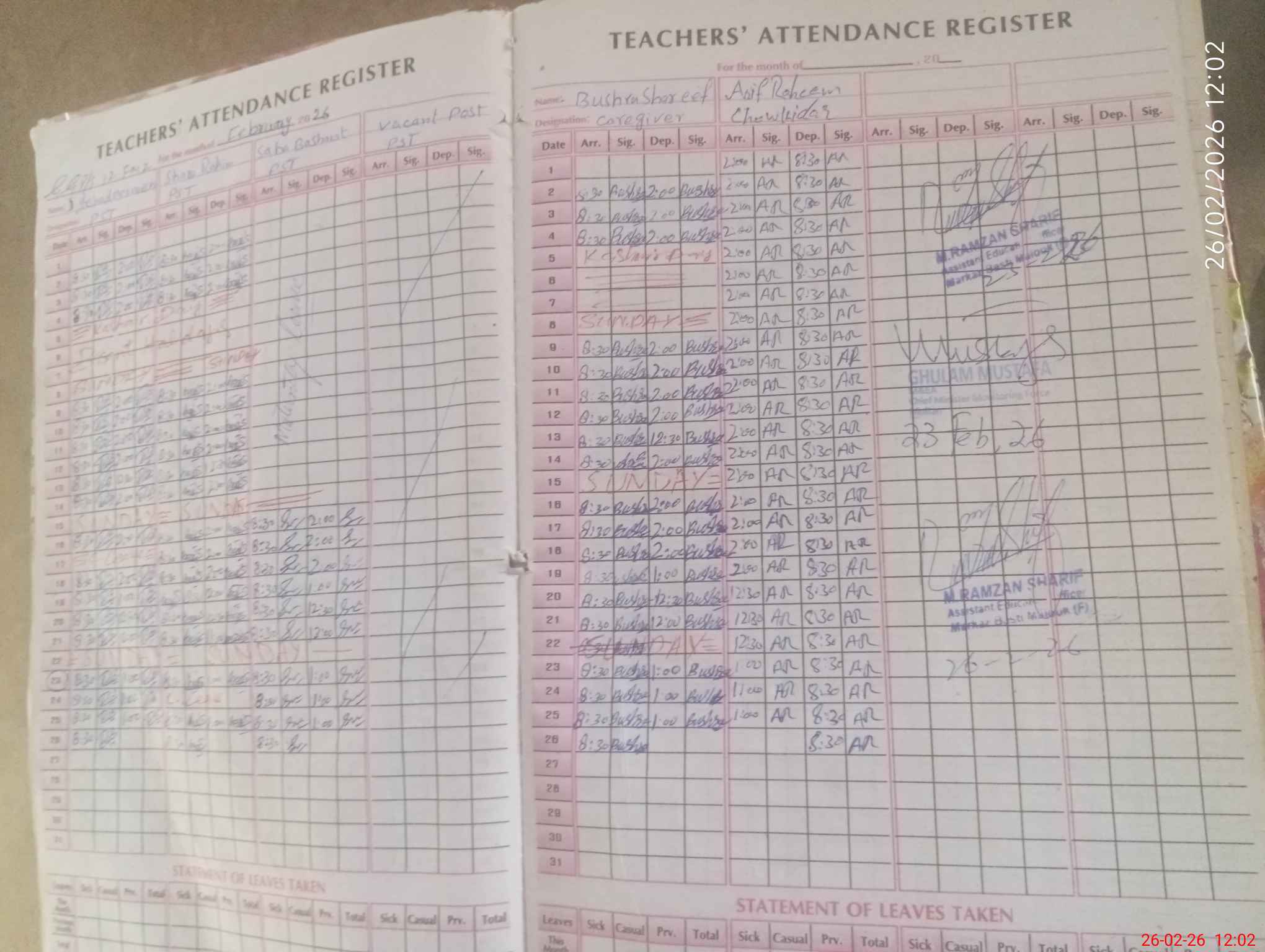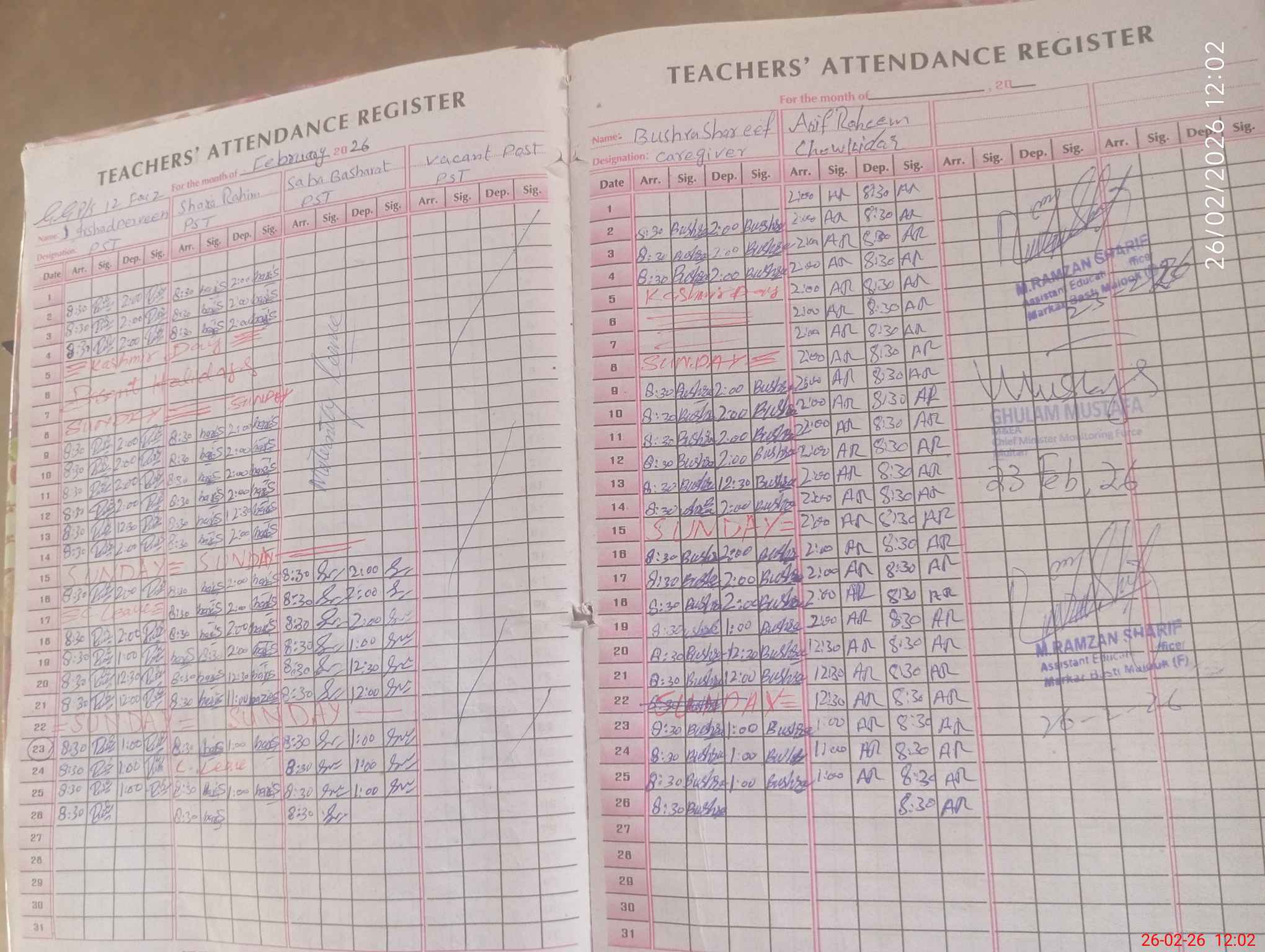 | Attendance Register | Head Teacher | MEA with School | Visit Proof |