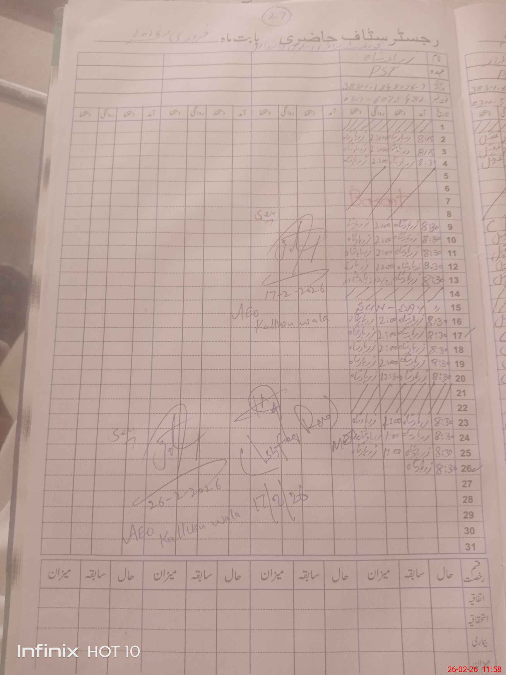 | Name: Za**** UdDi**** Sh**** Designation: (School Headmaster's/Headmistress's) PST Phone/Cell Number: 03**** |