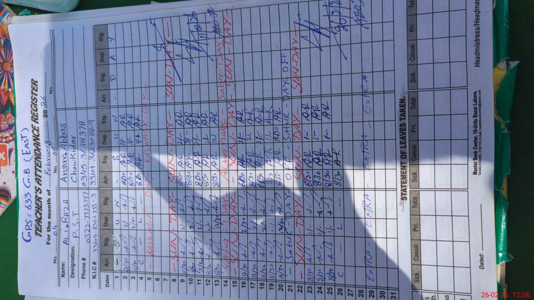 | Name: Mu**** Ak**** Designation: (School Headmaster's/Headmistress's) PST Phone/Cell Number: 03**** |