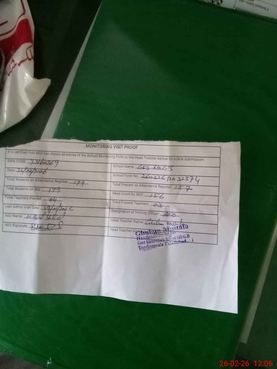 | EMIS Code: 33160369 | Name of School: GES CHAK NO.610/GB | |||