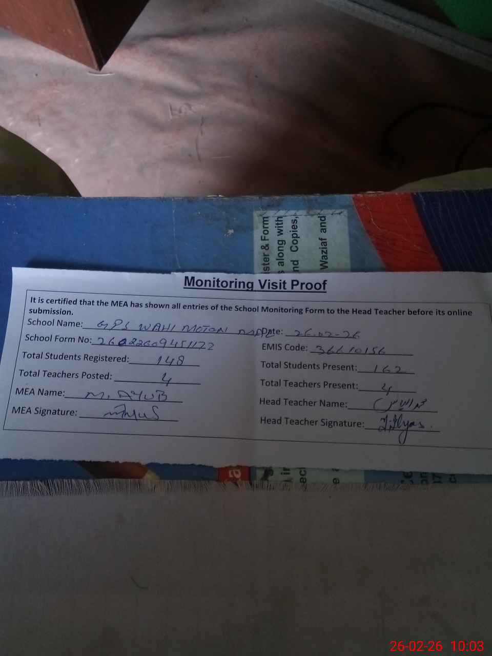 | EMIS Code: 36610156 | Name of School: GPS WAHI MOTON MAL | |||