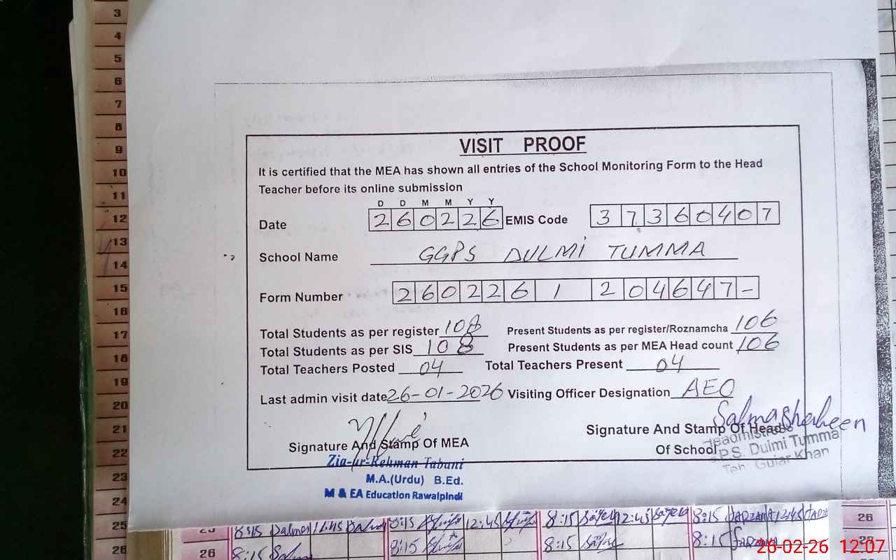 | EMIS Code: 37360407 | Name of School: GGPS DULMI TUMMA | |||