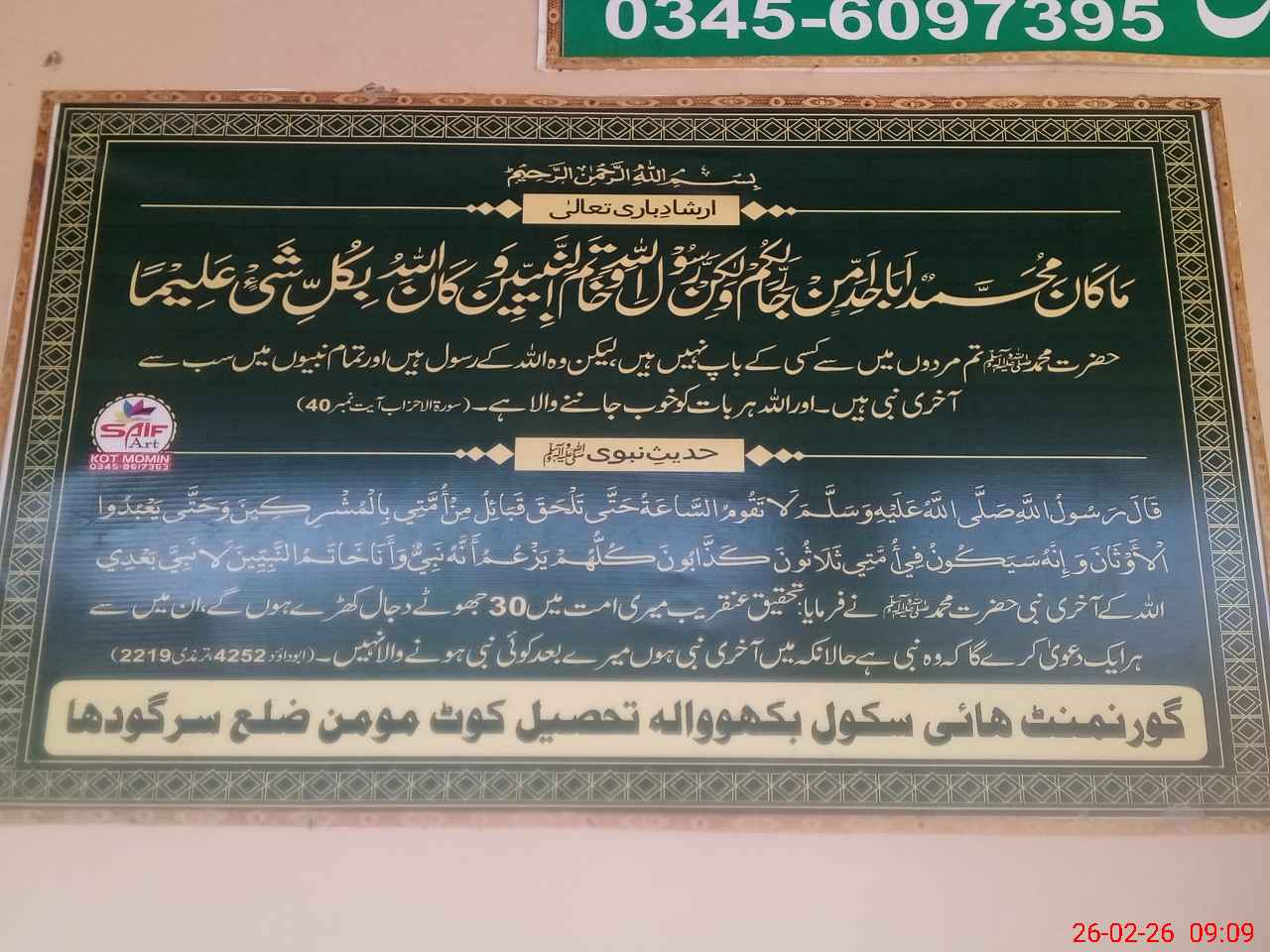| District: SARGODHA | Tehsil: KOT MOMIN | Markaz: SECONDARY-WING | Level: High | |