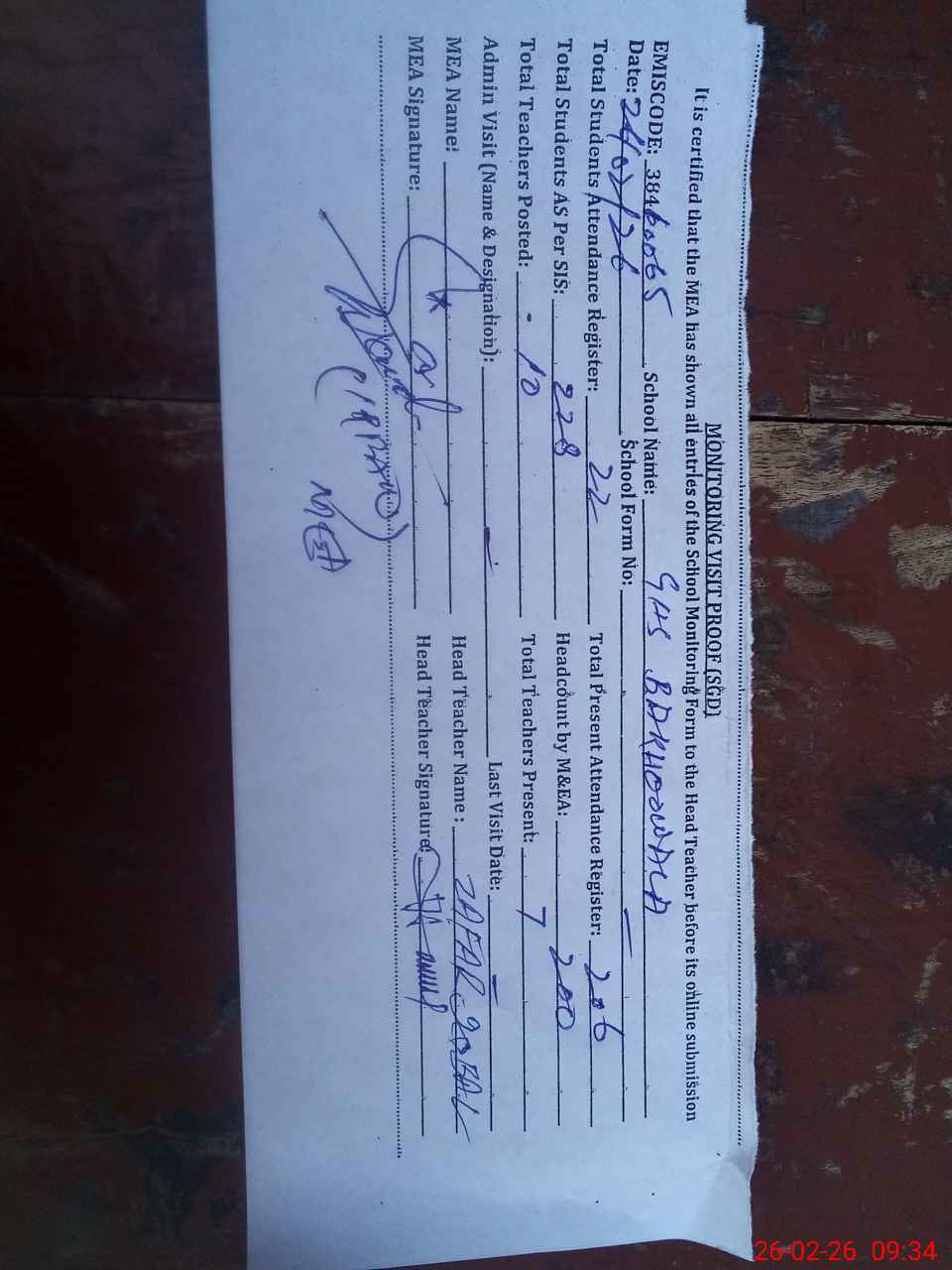| Certified that this School was Inspected by the Undersigned MEA/DMO Today and the Information Stated Above is as Per Record. | |||||