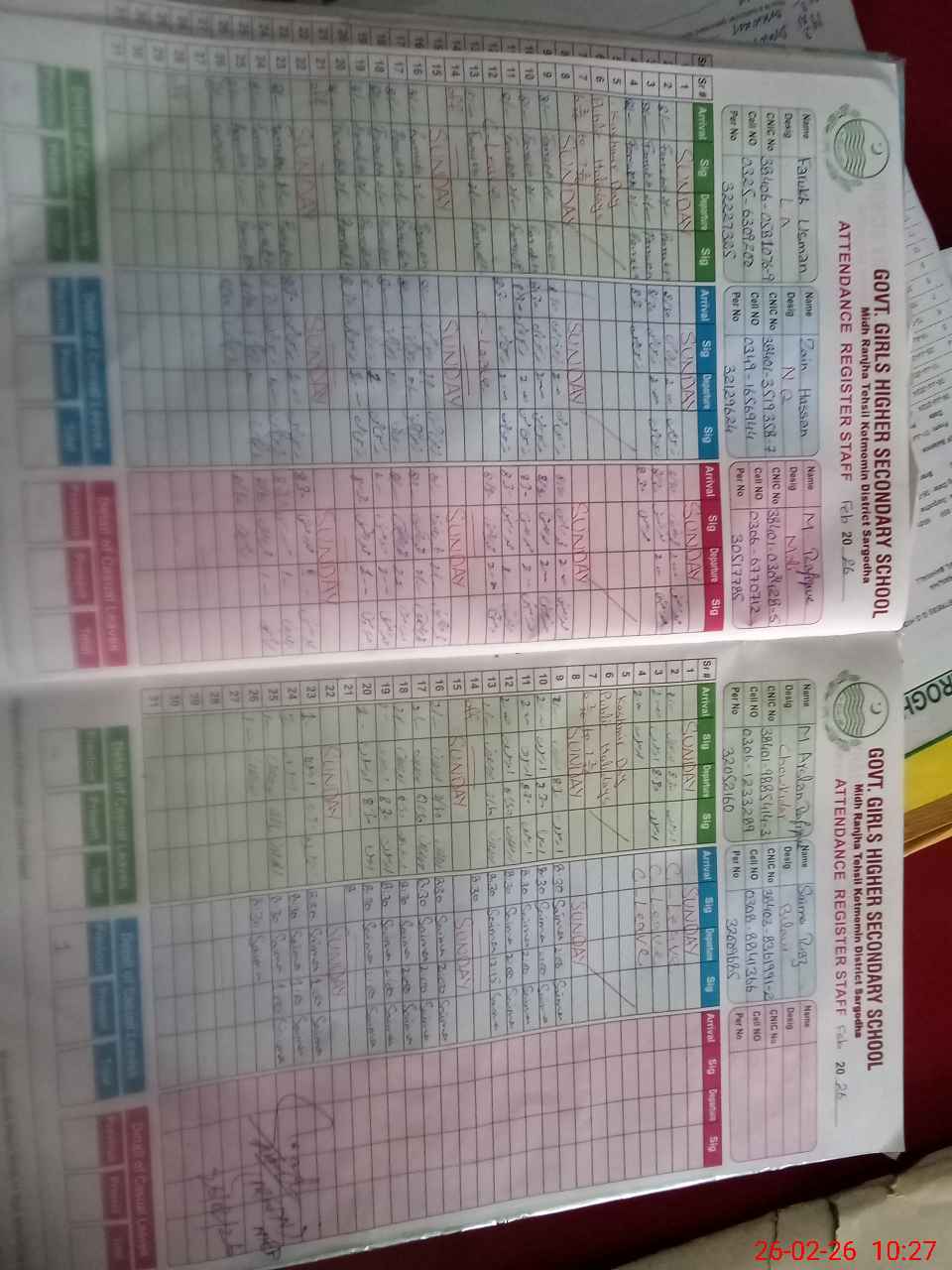 | CNIC | Full Name | Designation | R/C | Absence During Last Calender Month |