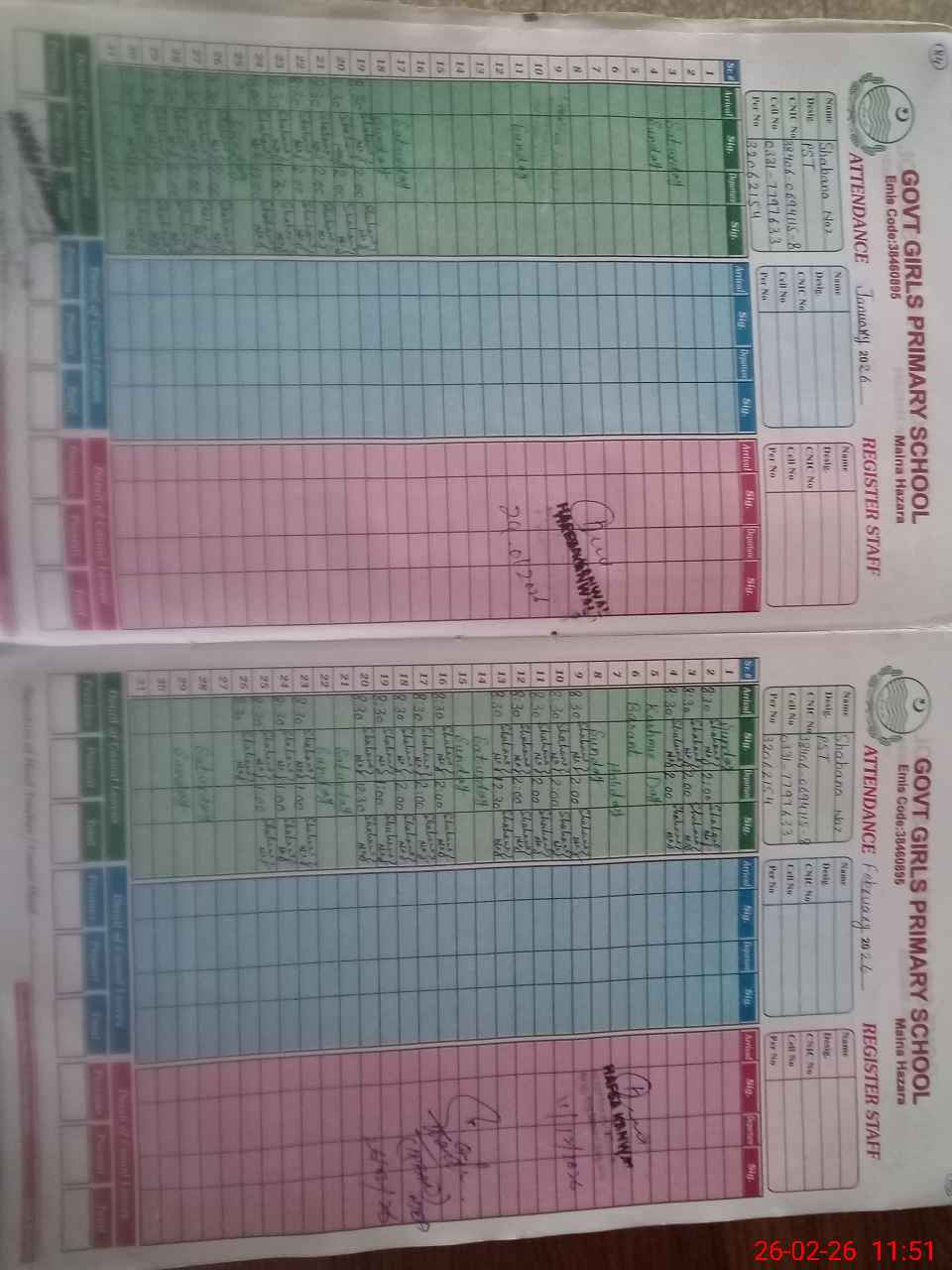 | Name: SH**** NA**** Designation: (School Headmaster's/Headmistress's) PST Phone/Cell Number: 03**** |