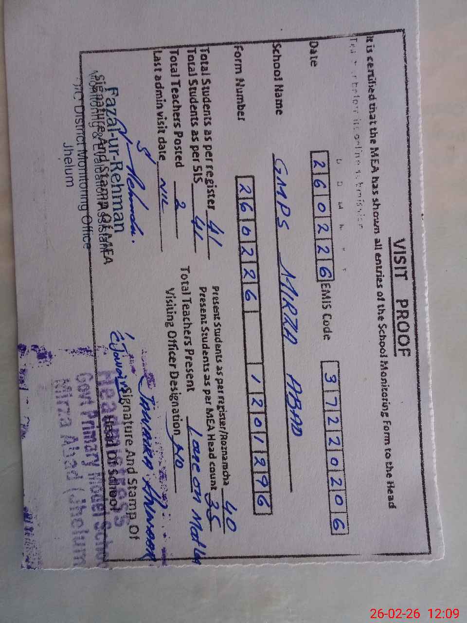 | EMIS Code: 37220206 | Name of School: GMPS MIRZA ABAD | |||