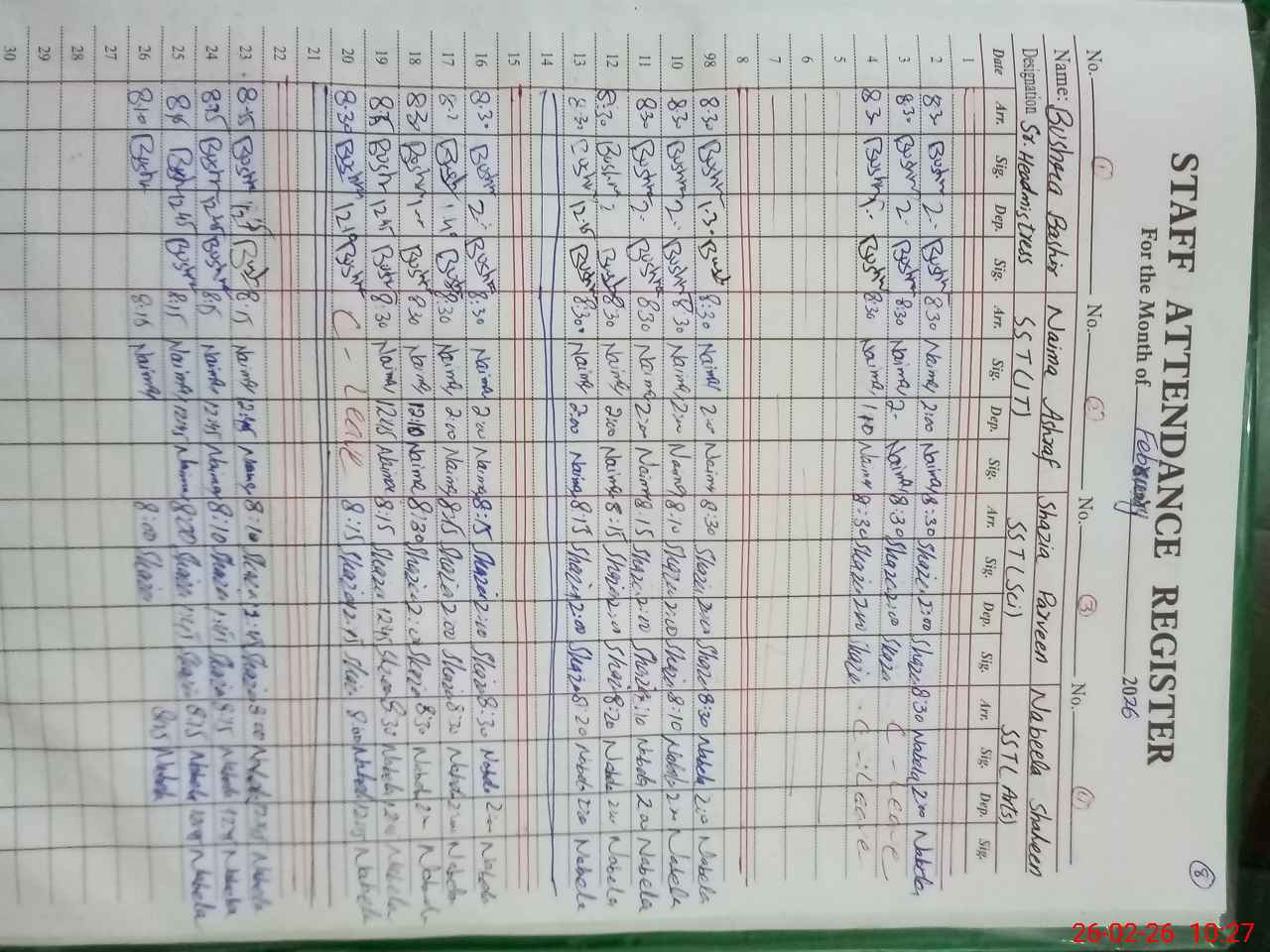 | CNIC | Full Name | Designation | R/C | Absence During Last Calender Month |