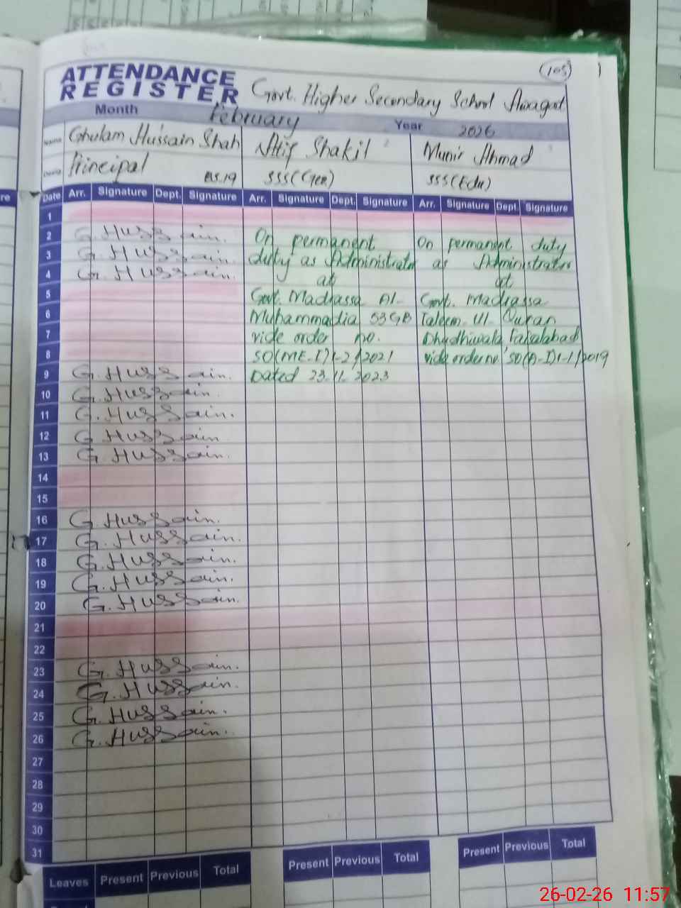 | Name: GH**** HU**** SH**** Designation: (School Headmaster's/Headmistress's) Principal Phone/Cell Number: 03**** |