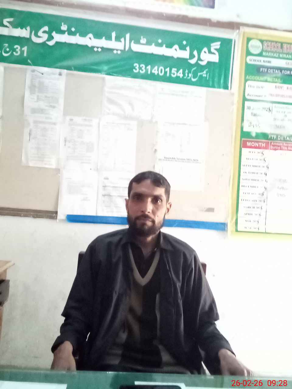 | Name: Sy**** Gh**** Al**** Designation: (School Headmaster's/Headmistress's) E S T Phone/Cell Number: 03**** |