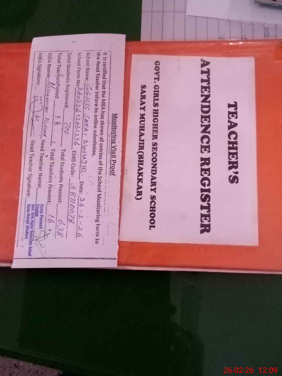 | EMIS Code: 38110078 | Name of School: GGHSS SARAI MUHAJAR | |||