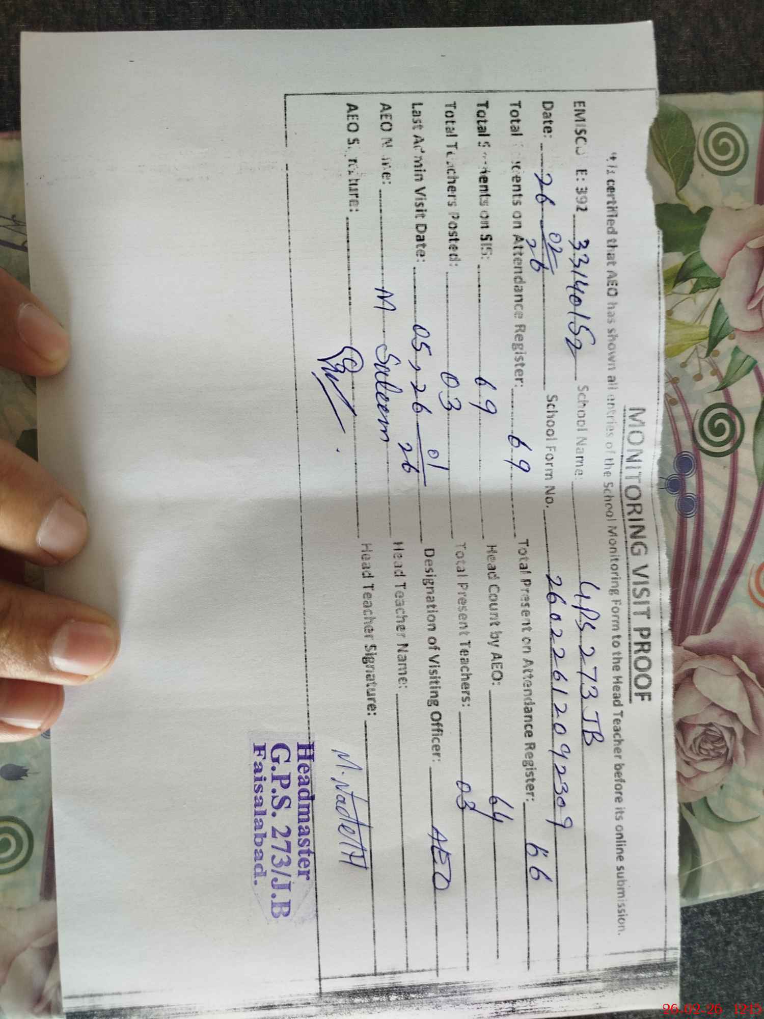 | EMIS Code: 33140152 | Name of School: GPS CHAK 273 JB | |||