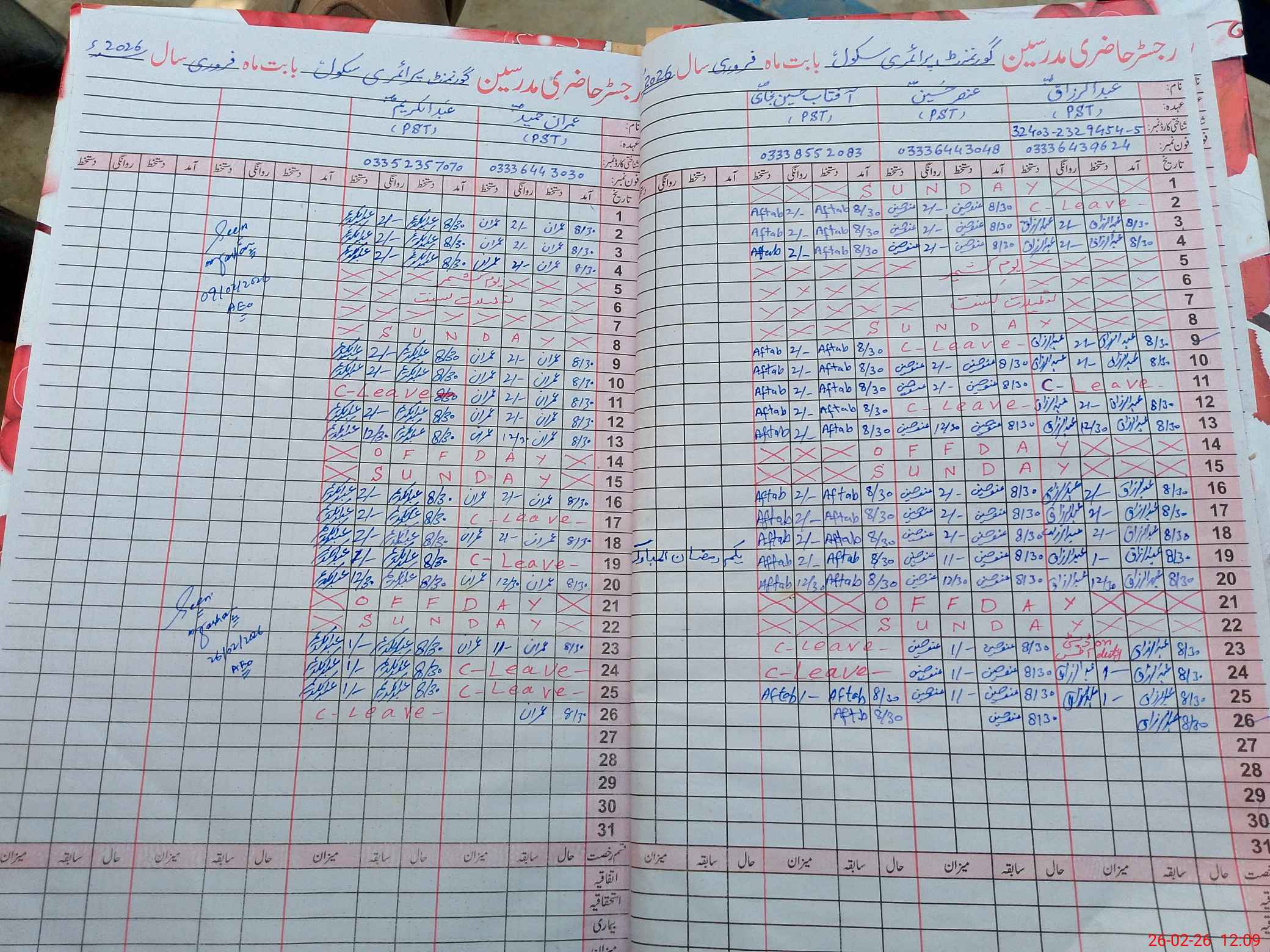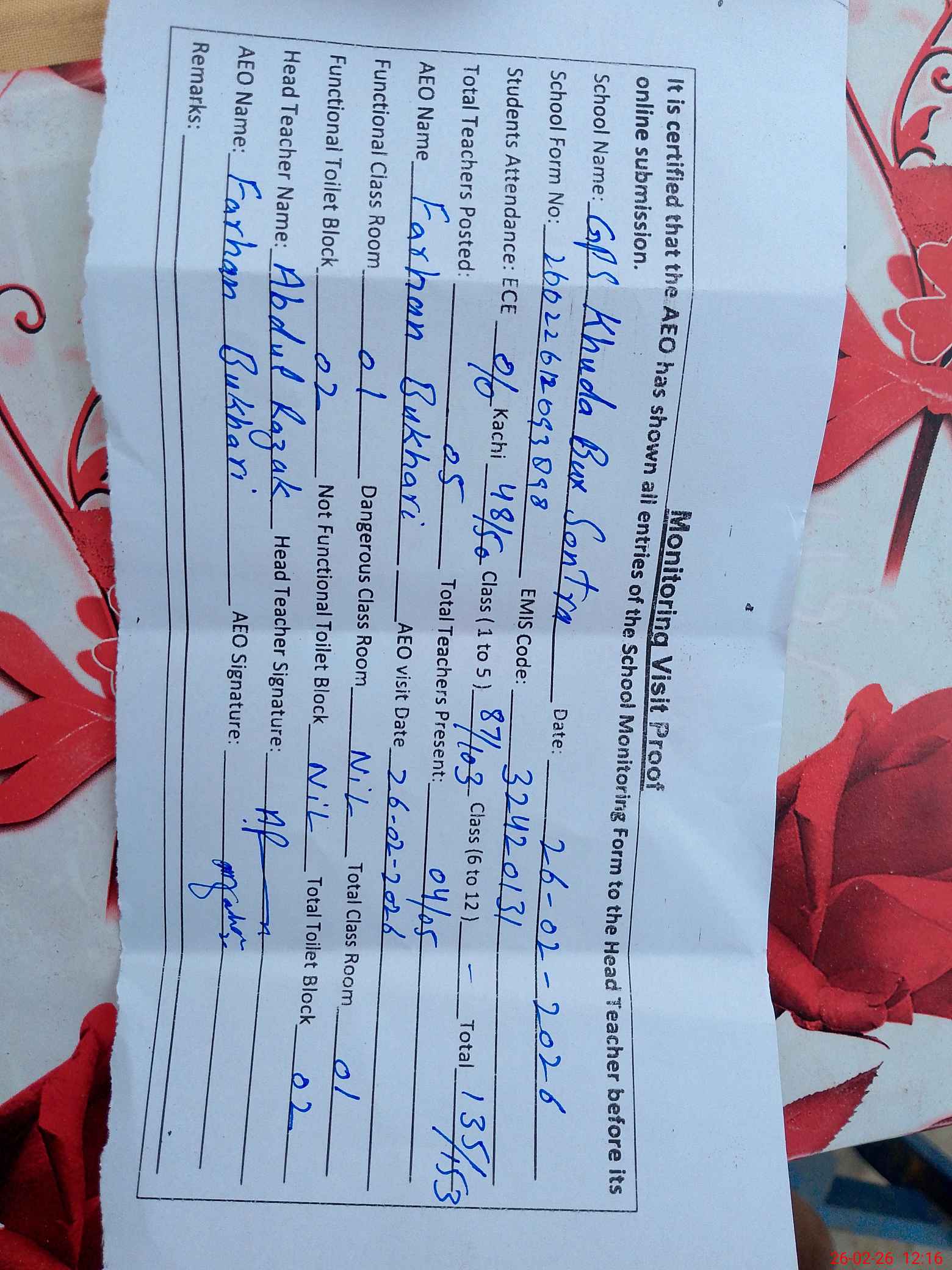 | Name: AB**** RA**** Designation: (School Headmaster's/Headmistress's) HEADMASTER Phone/Cell Number: 03**** |