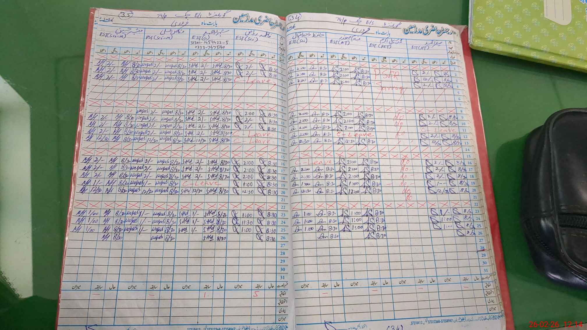 | Leave | Duty | Absent | Maternity | Medical | Ex- Pak |