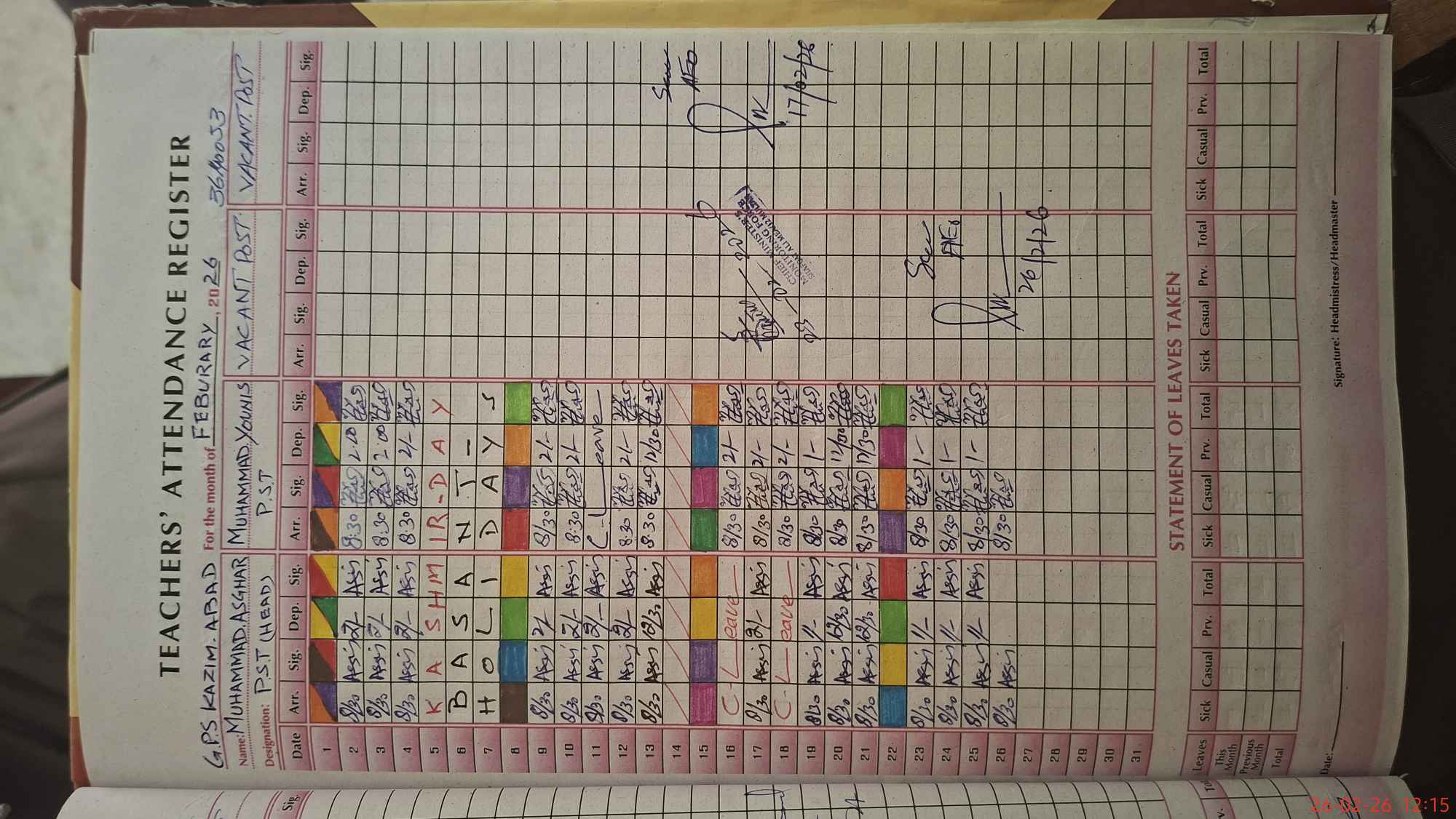 | Name: MU**** AS**** Designation: (School Headmaster's/Headmistress's) PST/PTC/JV Phone/Cell Number: 03**** |