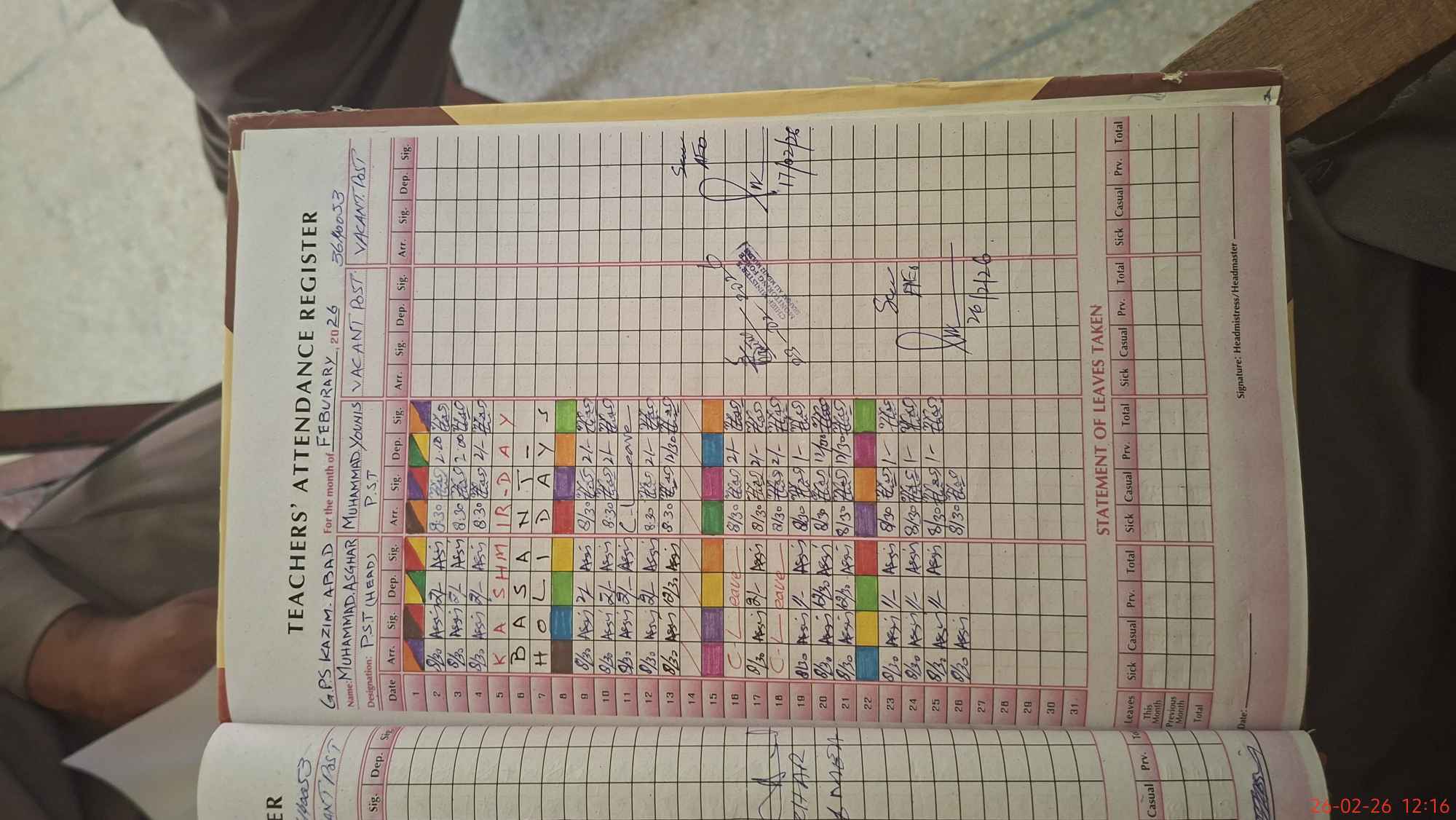 | Leave | Duty | Absent | Maternity | Medical | Ex- Pak |