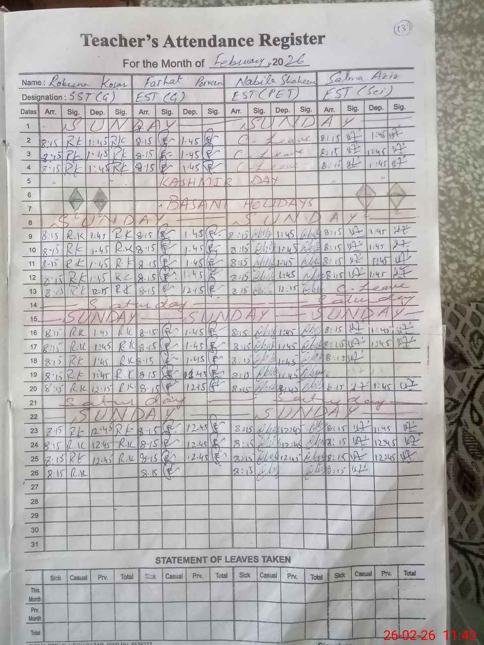 | 37**** | Aa**** Za**** | SST Computer Science | Regular | 0 | 0 | 0 | 0 | 0 | 0 | 0 | 0 | 0 | Casual |