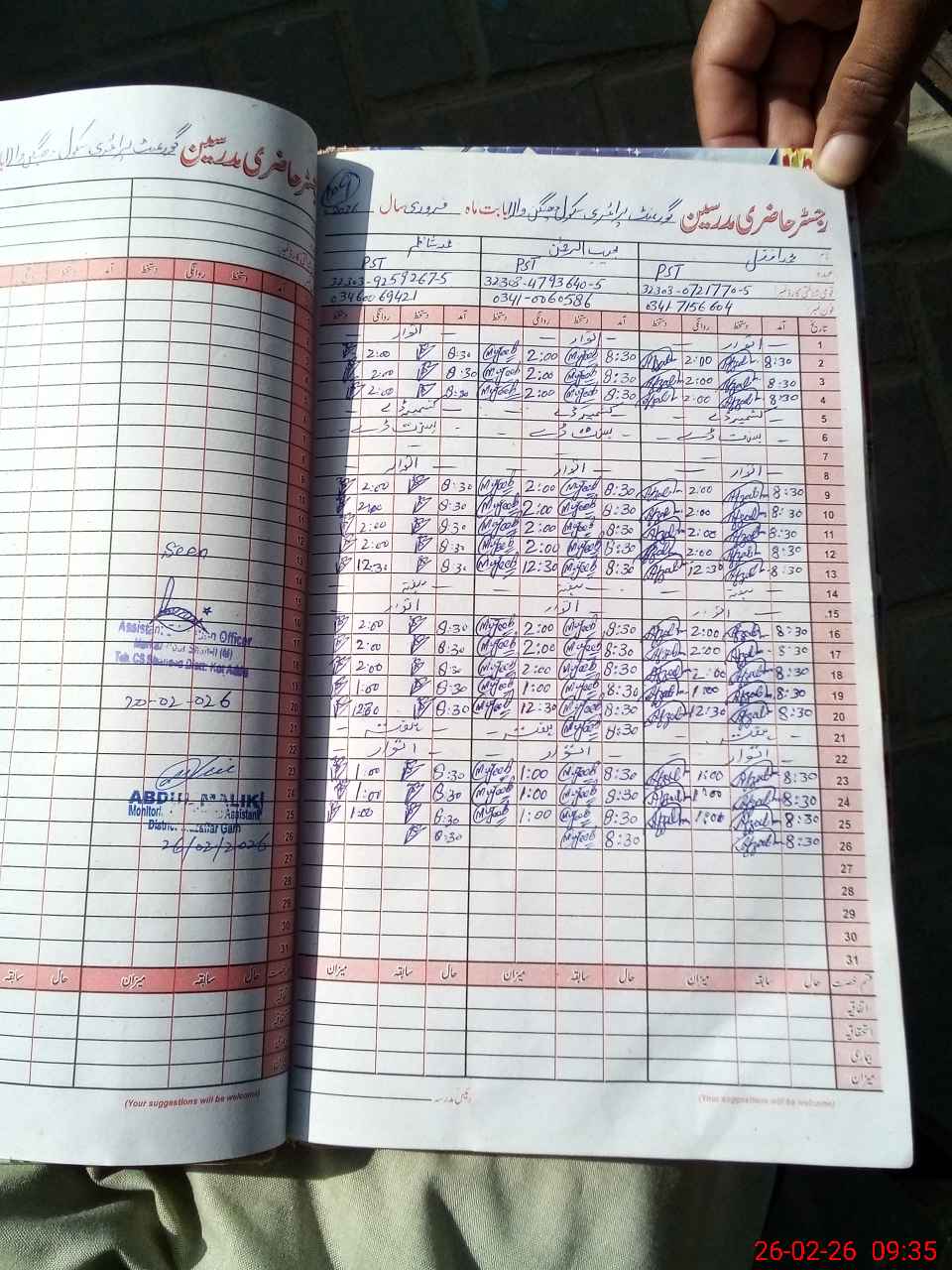 | Name: M.**** Designation: (School Headmaster's/Headmistress's) PST Phone/Cell Number: 03**** |