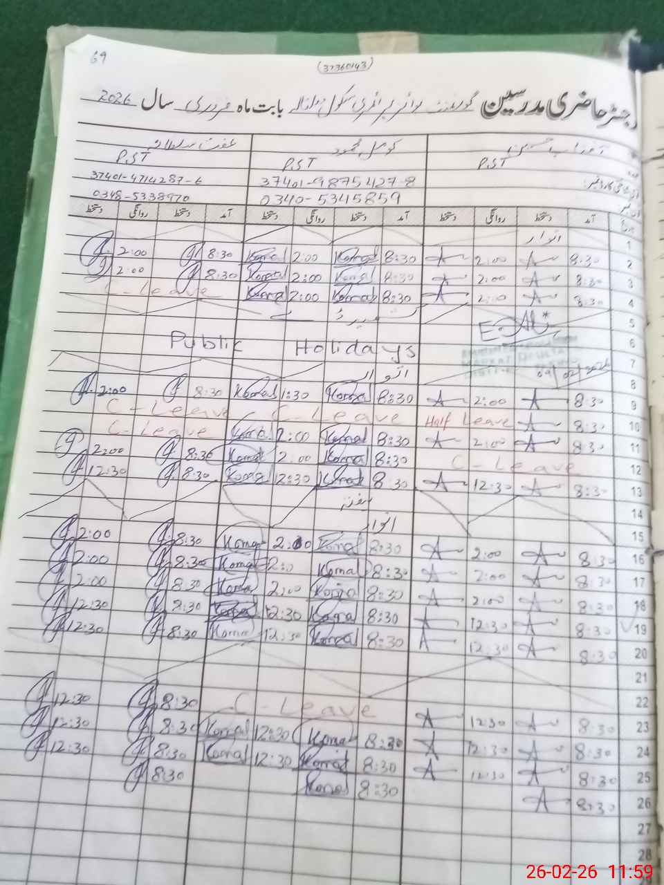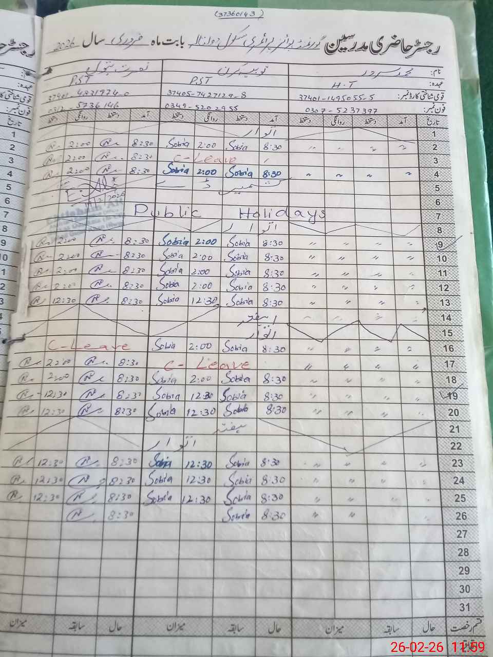 | Name: MU**** SA**** Designation: (School Headmaster's/Headmistress's) PST Phone/Cell Number: 03**** |