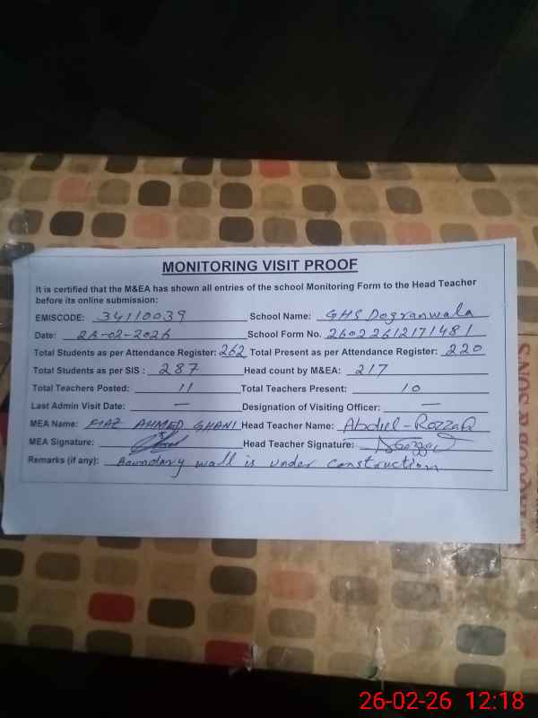 | EMIS Code: 34110039 | Name of School: GHS DOGRAN WALA | |||