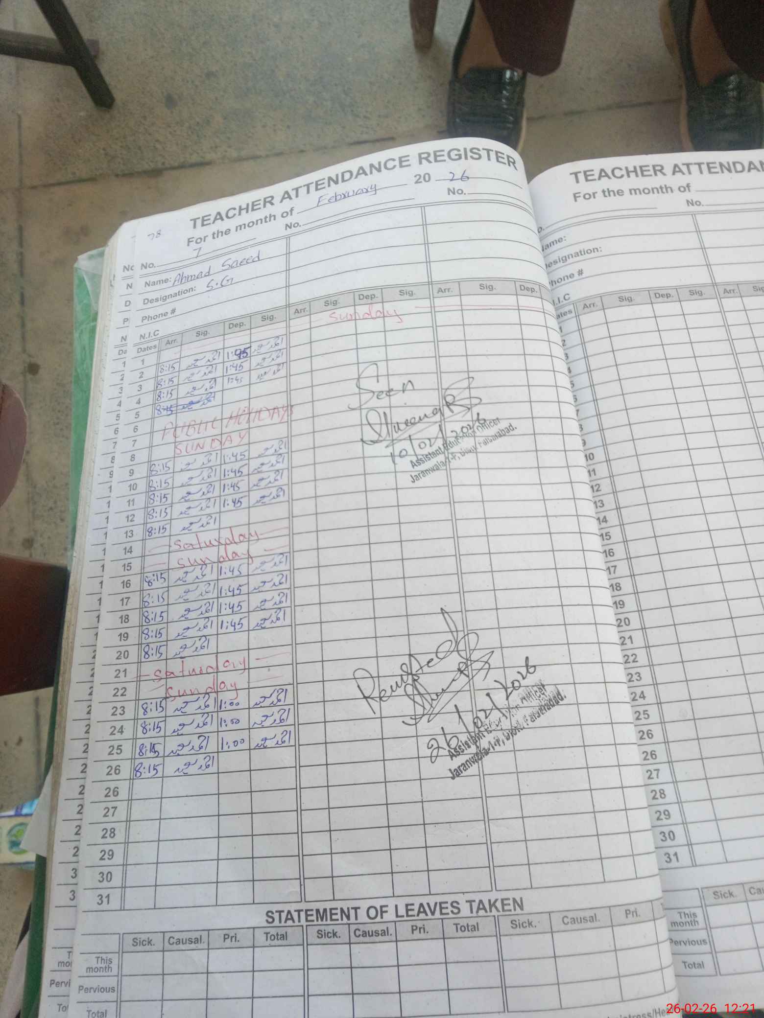 | Name: Fo**** No**** Designation: (School Headmaster's/Headmistress's) PST Phone/Cell Number: 03**** |