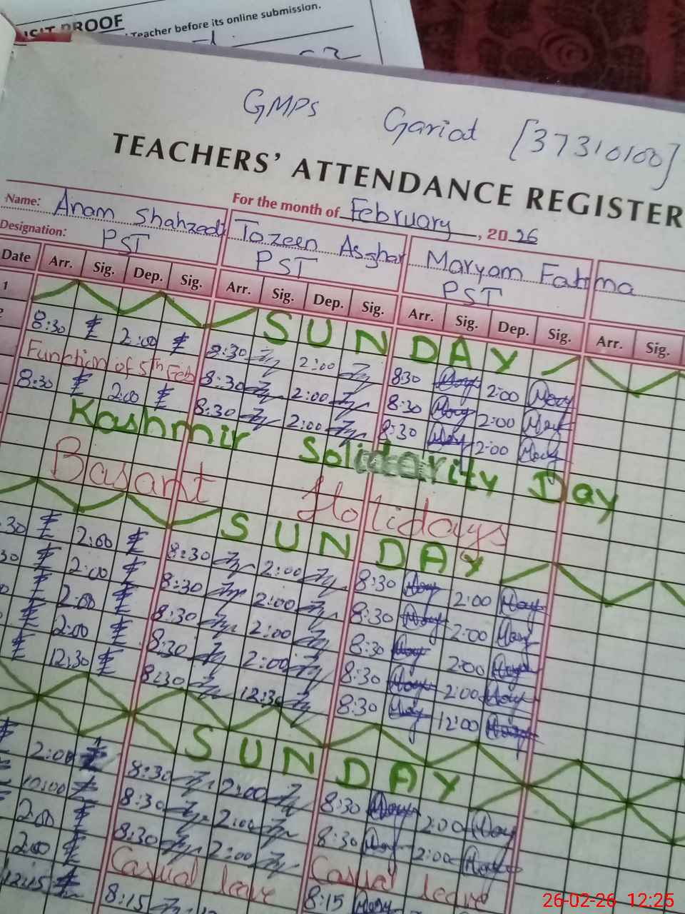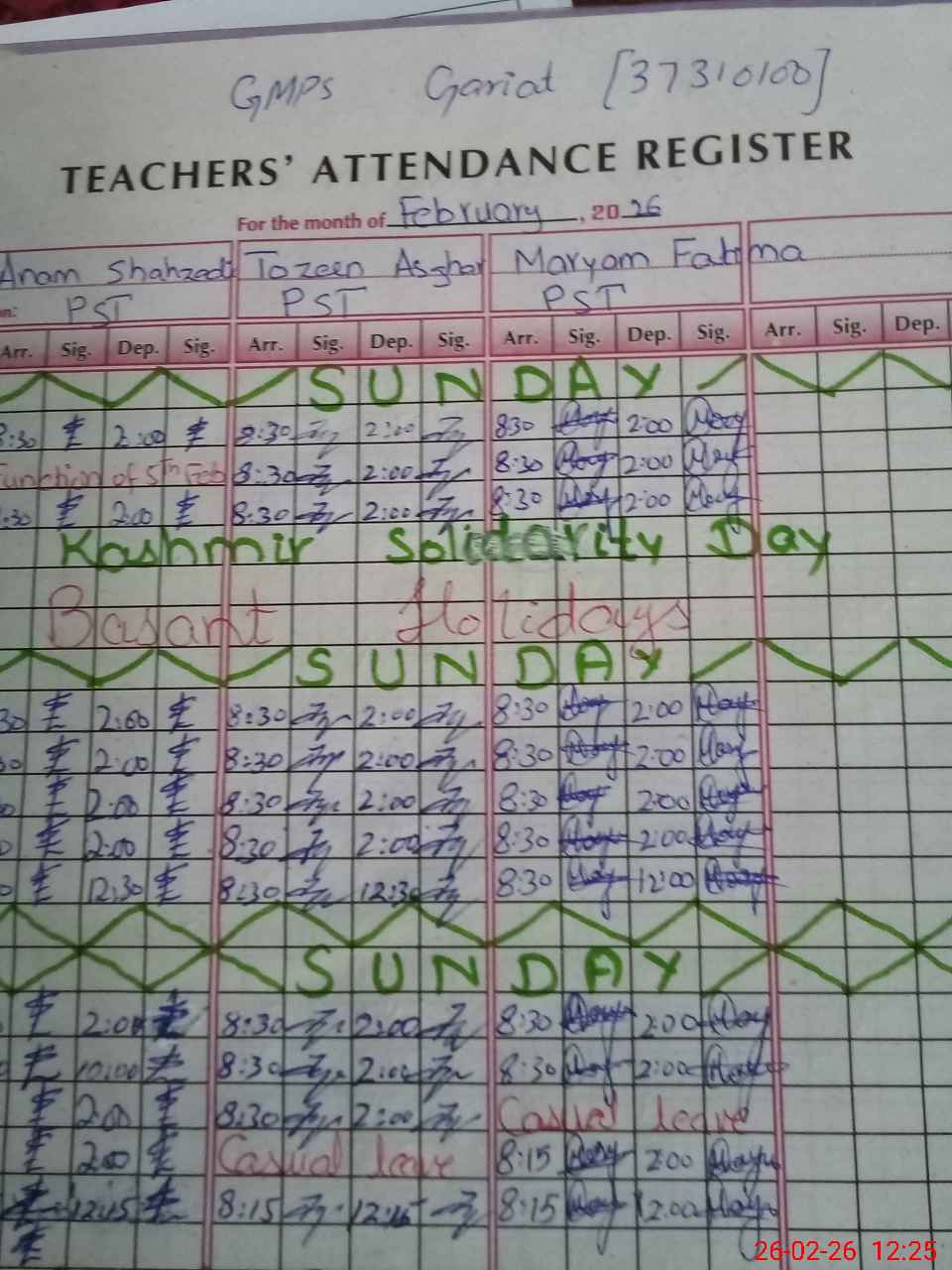 | 37**** | An**** Sh**** | PST Science/Maths | Regular | 0 | 0 | 0 | 0 | 0 | 0 | 0 | 0 | 0 | Casual |