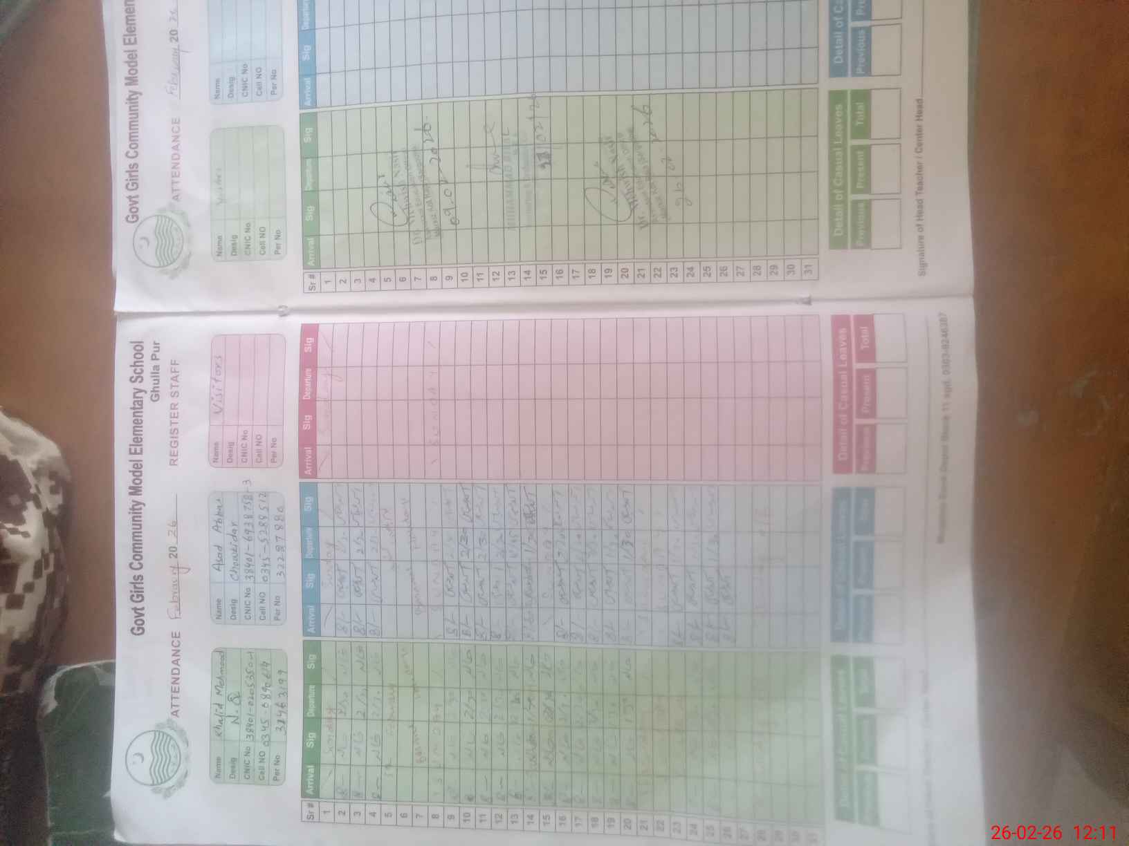 | CNIC | Full Name | Designation | R/C | Absence During Last Calender Month |