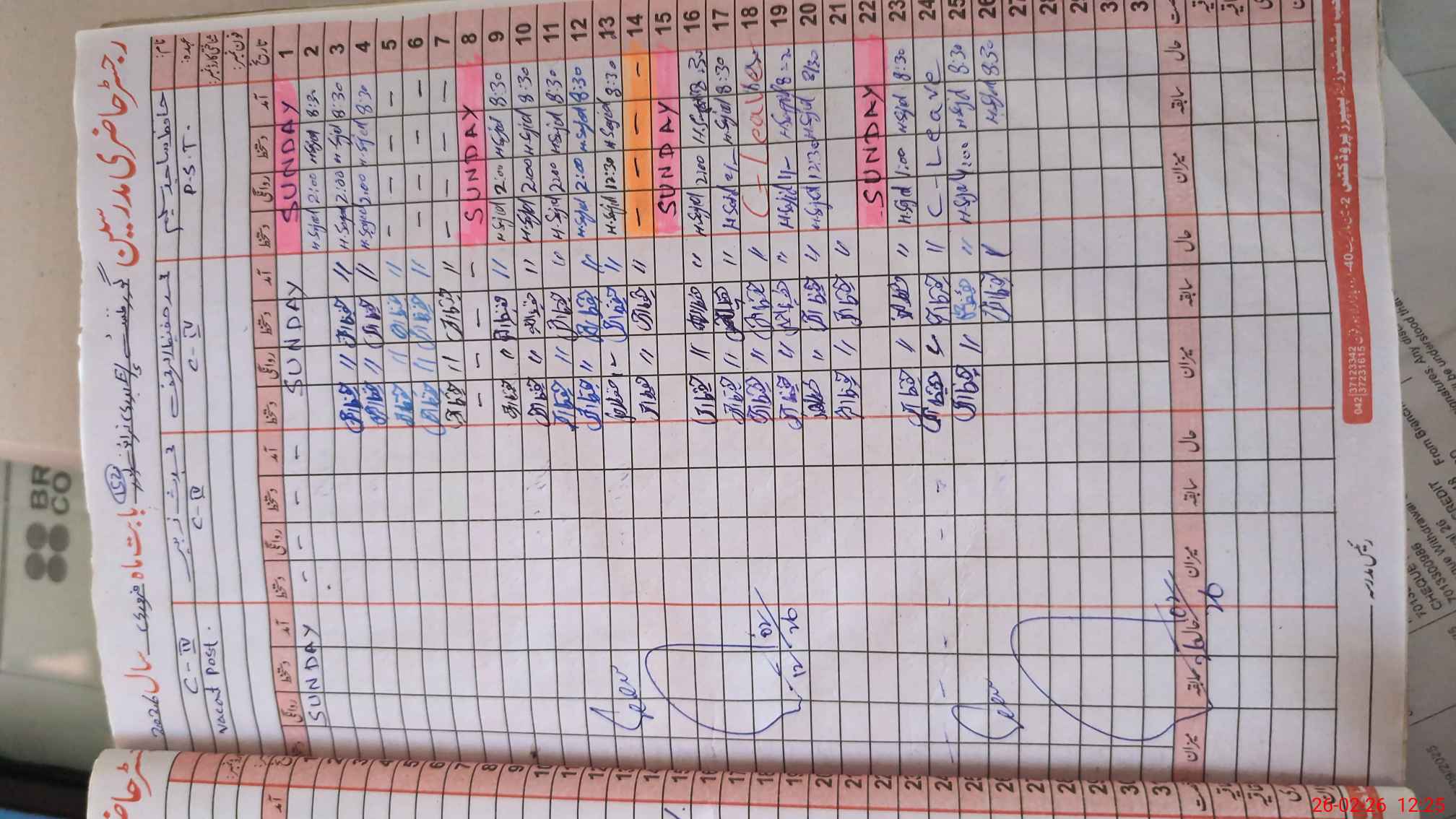 | CNIC | Full Name | Designation | R/C | Absence During Last Calender Month |