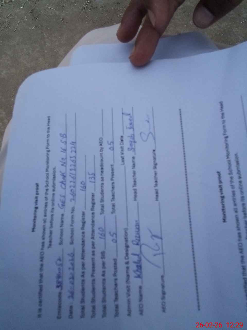 | Attendance Register | Head Teacher | MEA with School | Visit Proof |
