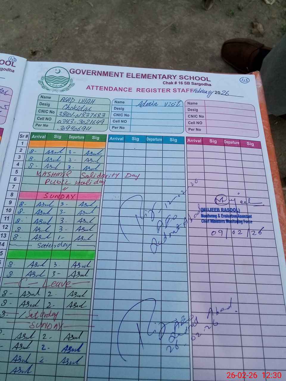 | CNIC | Full Name | Designation | R/C | Absence during last cal. month |