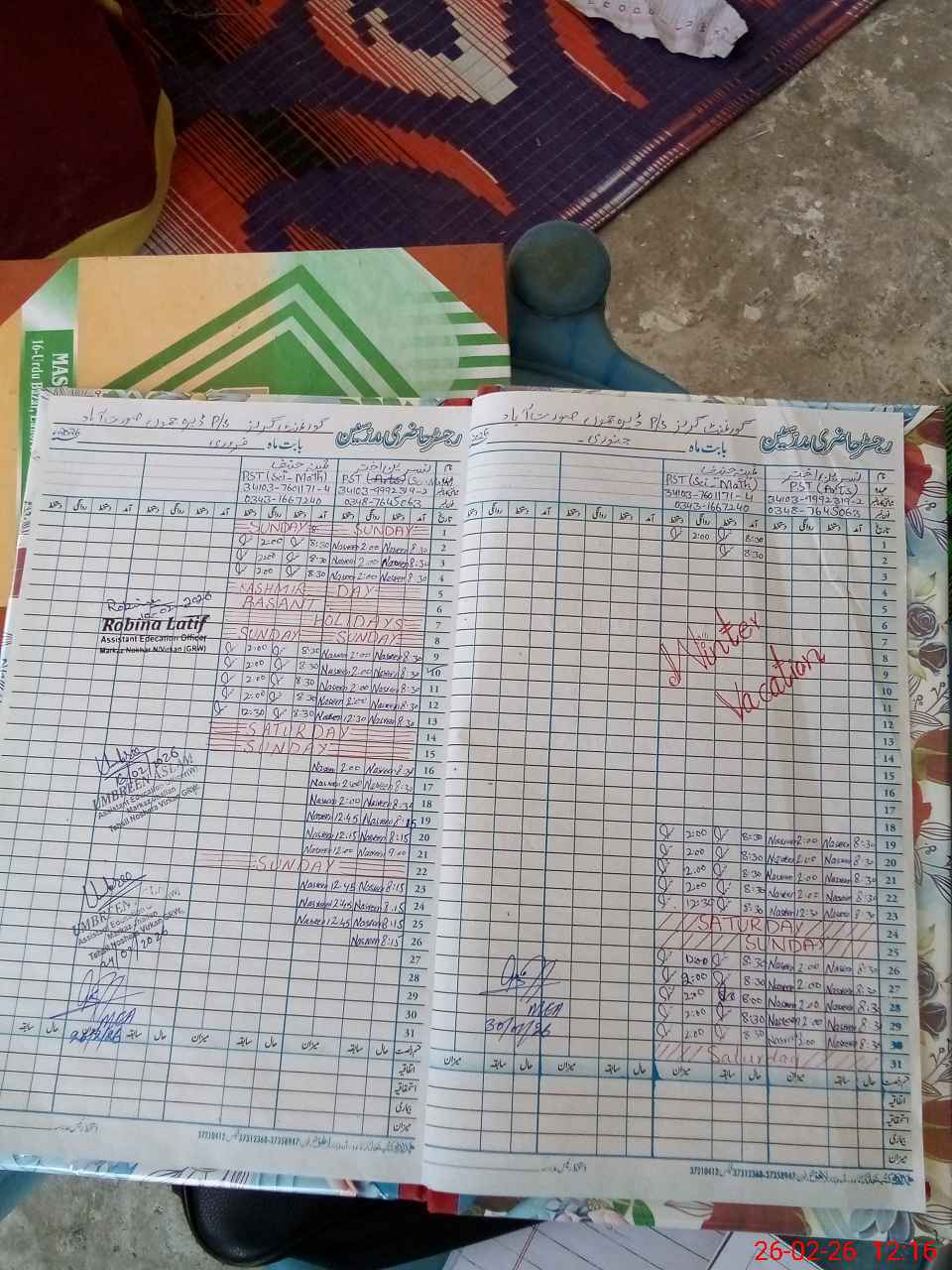 | Name: SA**** SU**** Designation: (School Headmaster's/Headmistress's) EST Phone/Cell Number: 03**** |