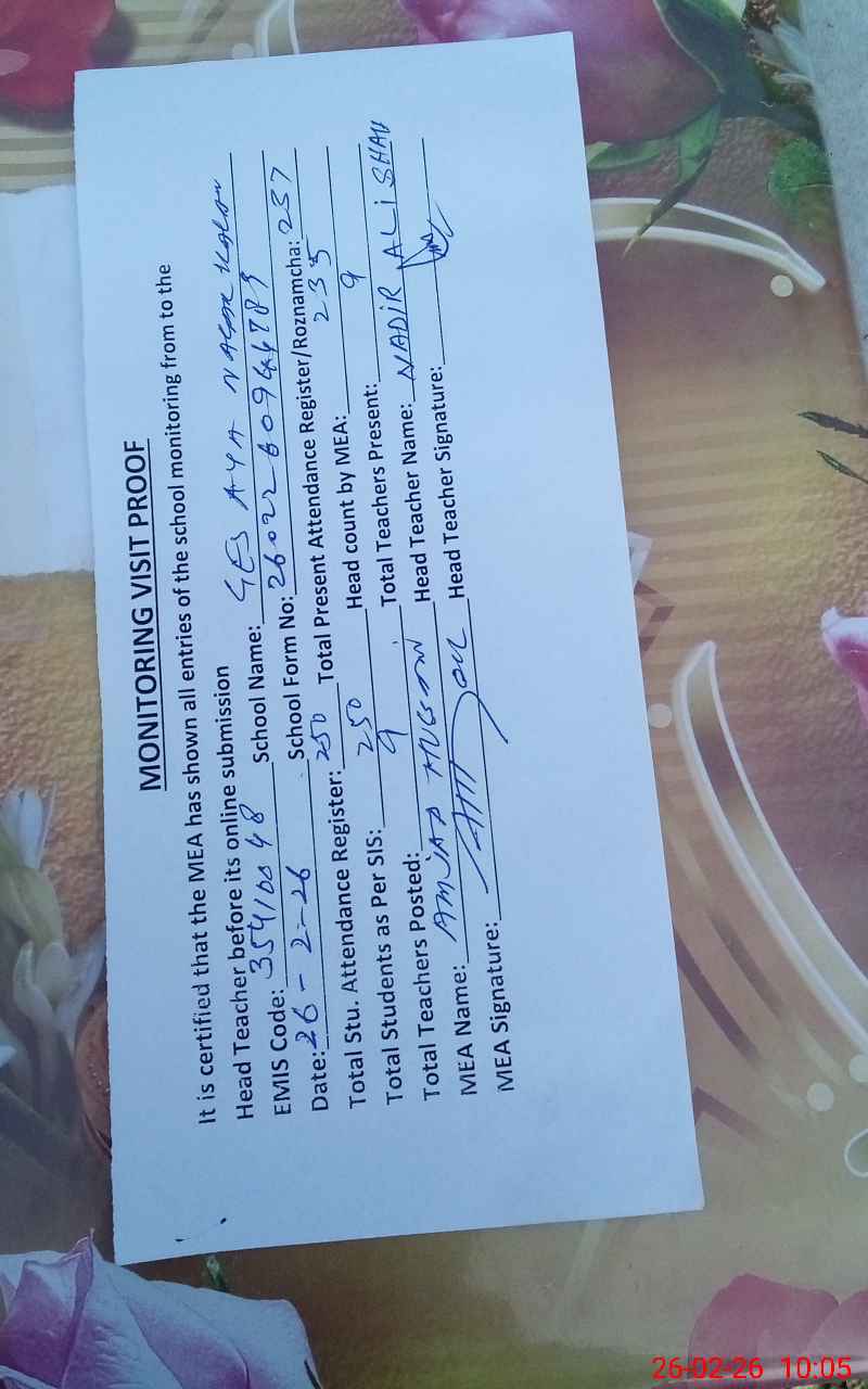 | EMIS Code: 35410048 | Name of School: GES AYYA NAGER KALAN | |||