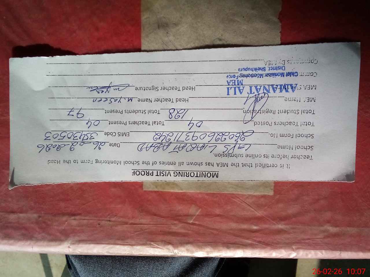 | Certified that this School was Inspected by the Undersigned MEA/DMO Today and the Information Stated Above is as Per Record. | |||||