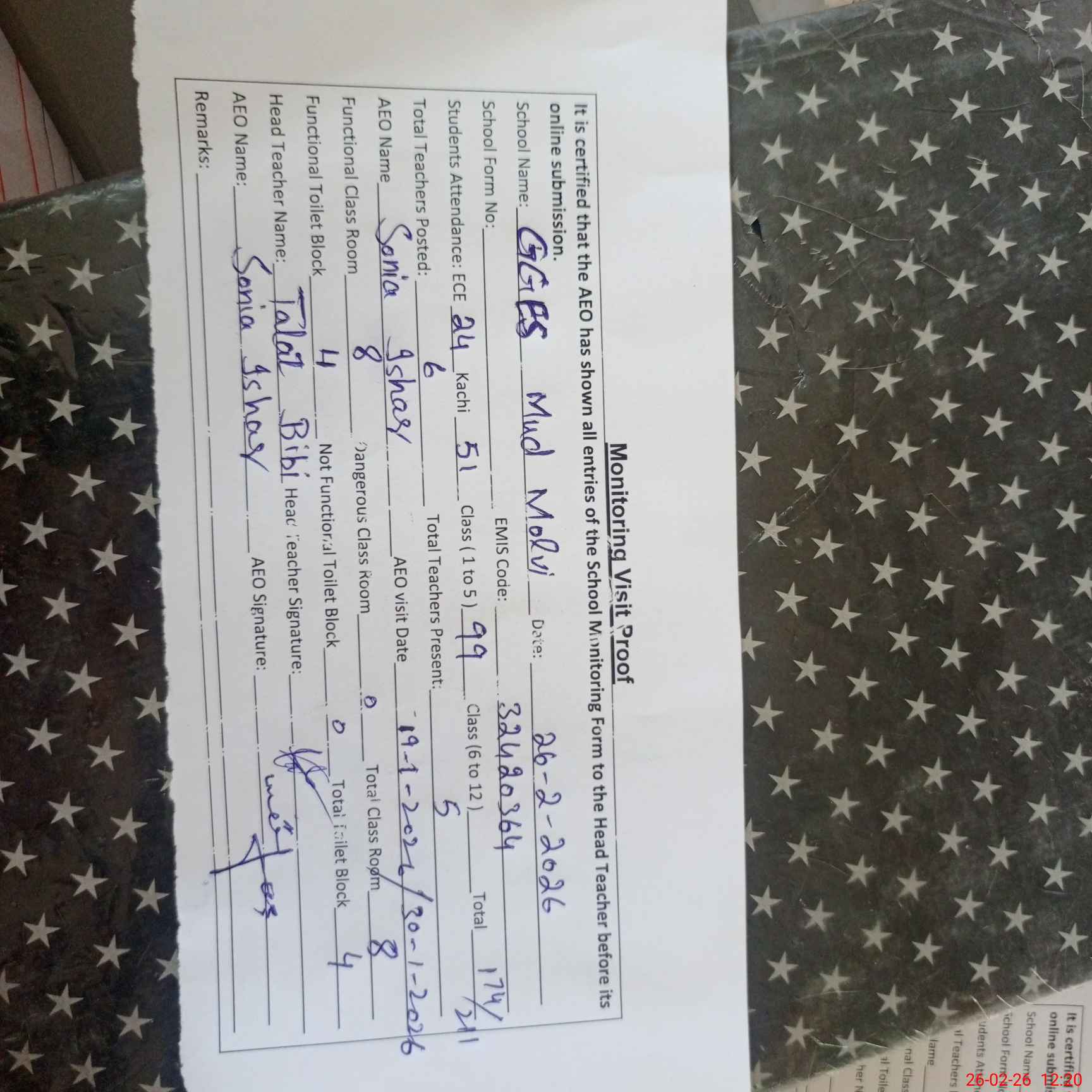 | EMIS Code: 32420364 | Name of School: GGES MUD MOULVI | |||