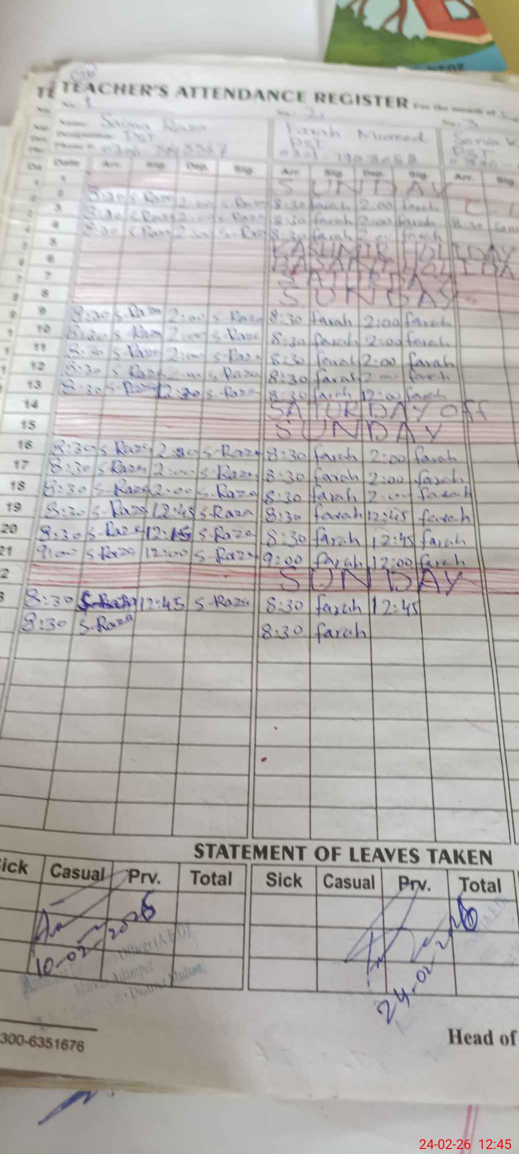 | 32**** | So**** Ka**** | PST Science/Maths | Regular | 0 | 0 | 0 | 0 | 0 | 0 | 0 | 0 | 0 | Absent (Un-Authorized) |