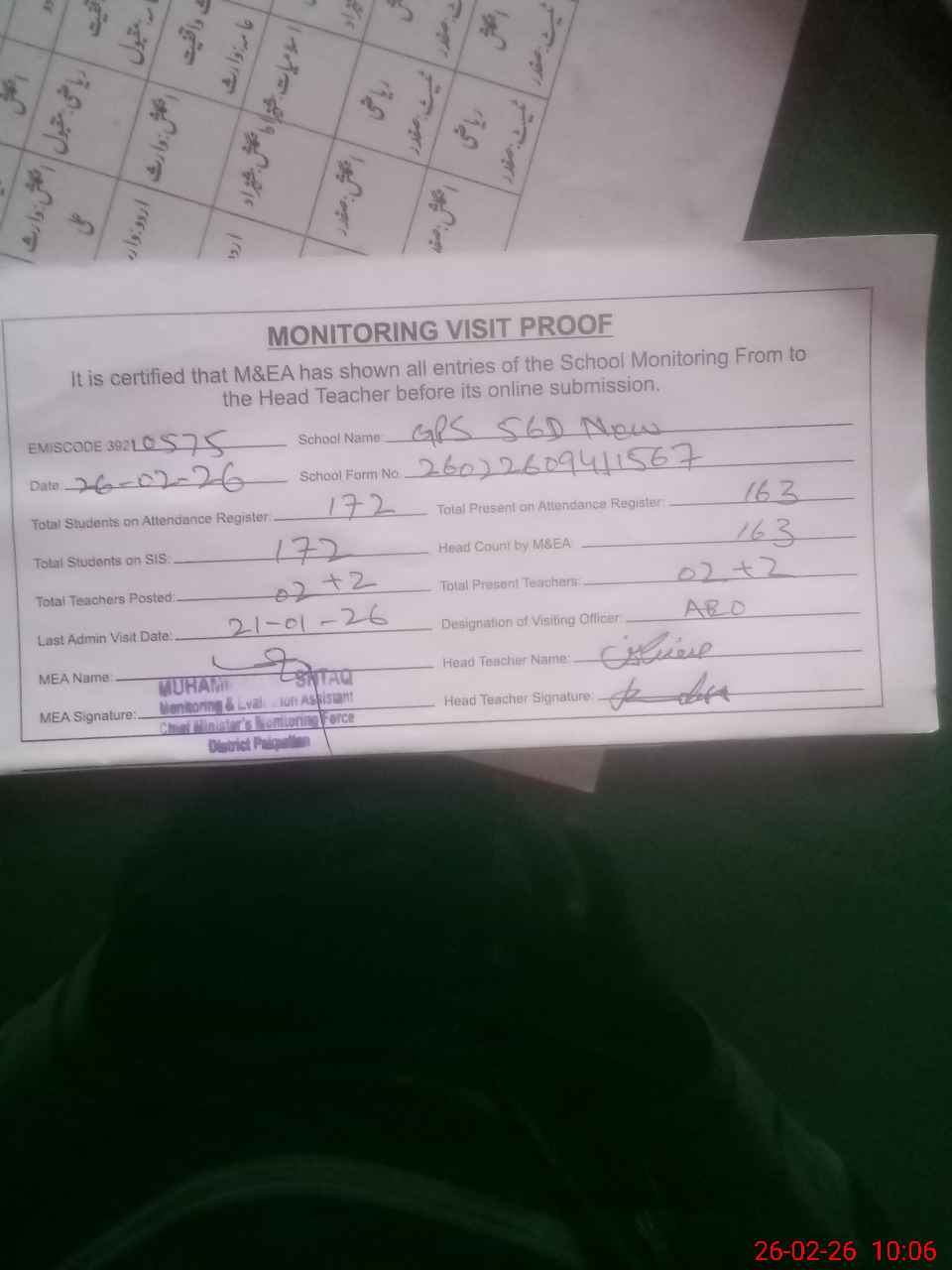 | Certified that this School was Inspected by the Undersigned MEA/DMO Today and the Information Stated Above is as Per Record. | |||||