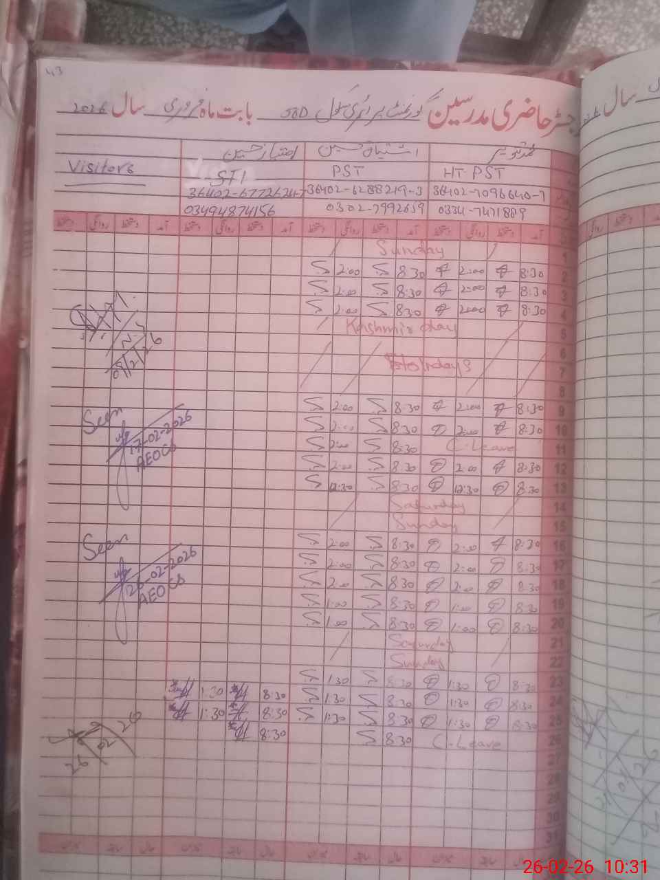 | Name: MTa**** Designation: (School Headmaster's/Headmistress's) PST Phone/Cell Number: 03**** |