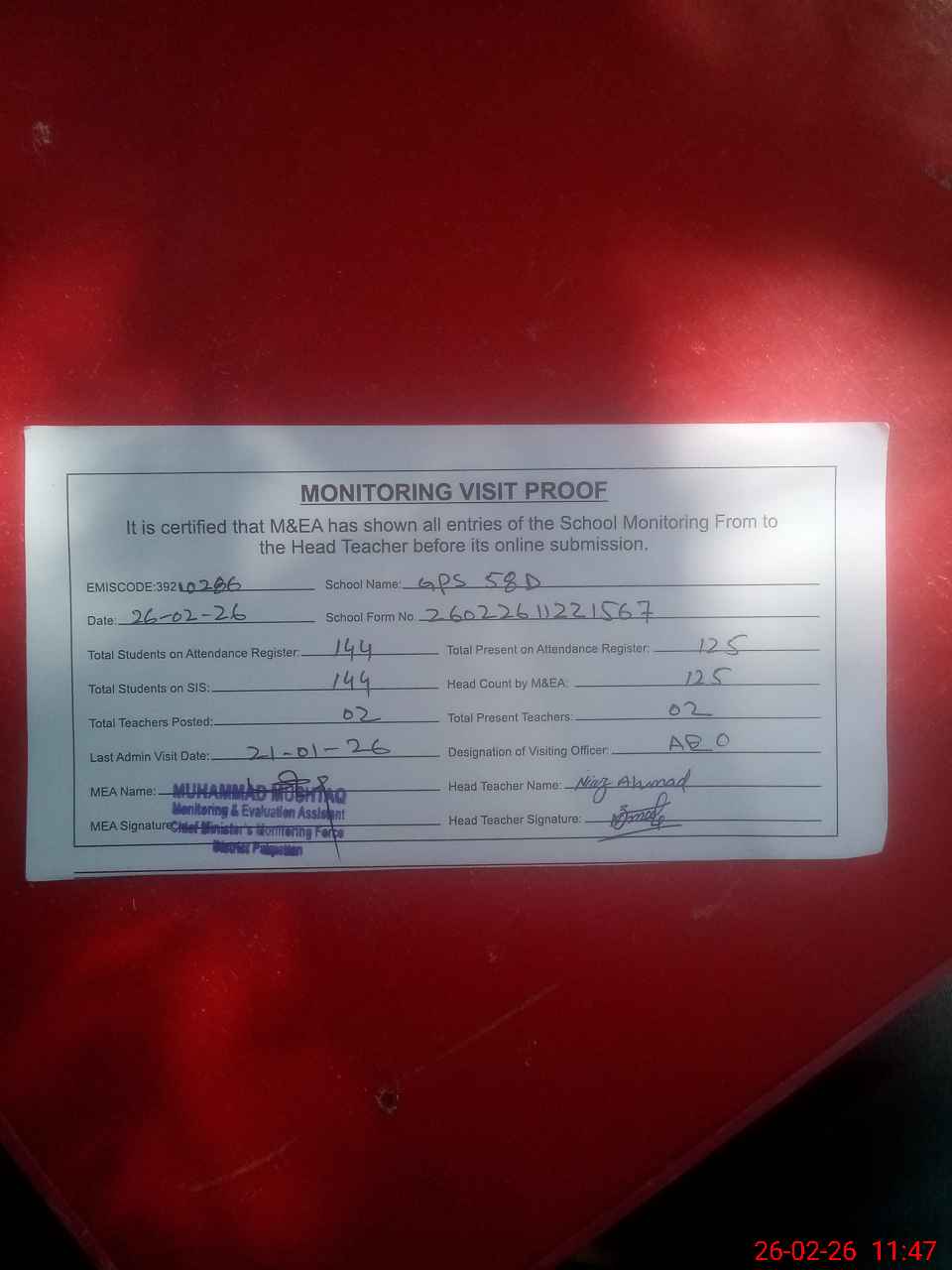| EMIS Code: 39210286 | Name of School: GPS 58/D | |||