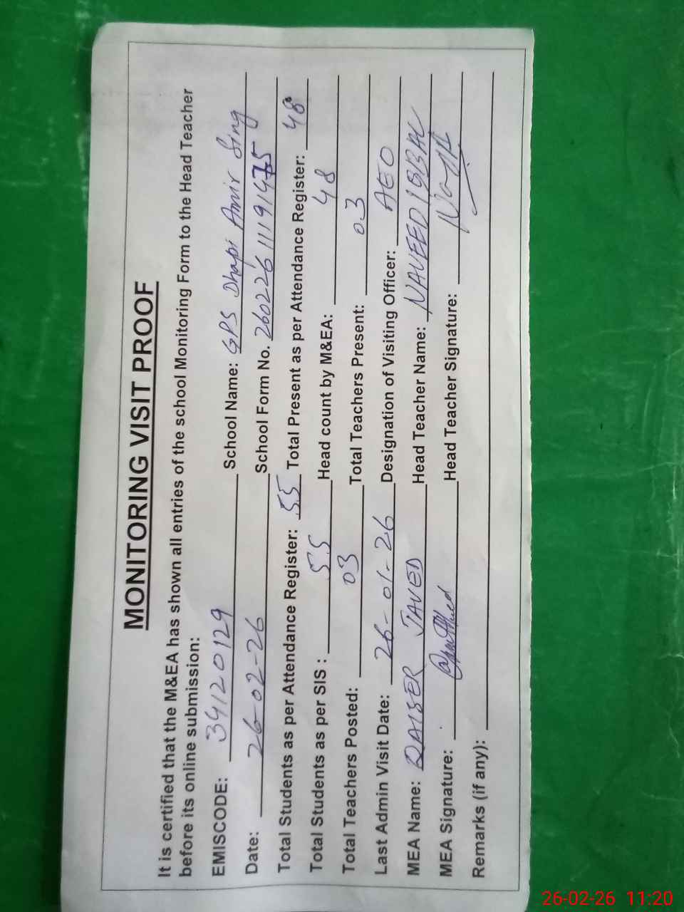 | EMIS Code: 34120129 | Name of School: GPS DHAPIE AMIR SINGH | |||