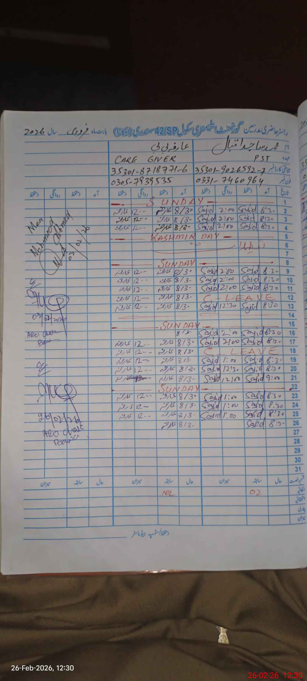 | Name: At**** ulHa**** Designation: (School Headmaster's/Headmistress's) EST Gen Phone/Cell Number: 03**** |
