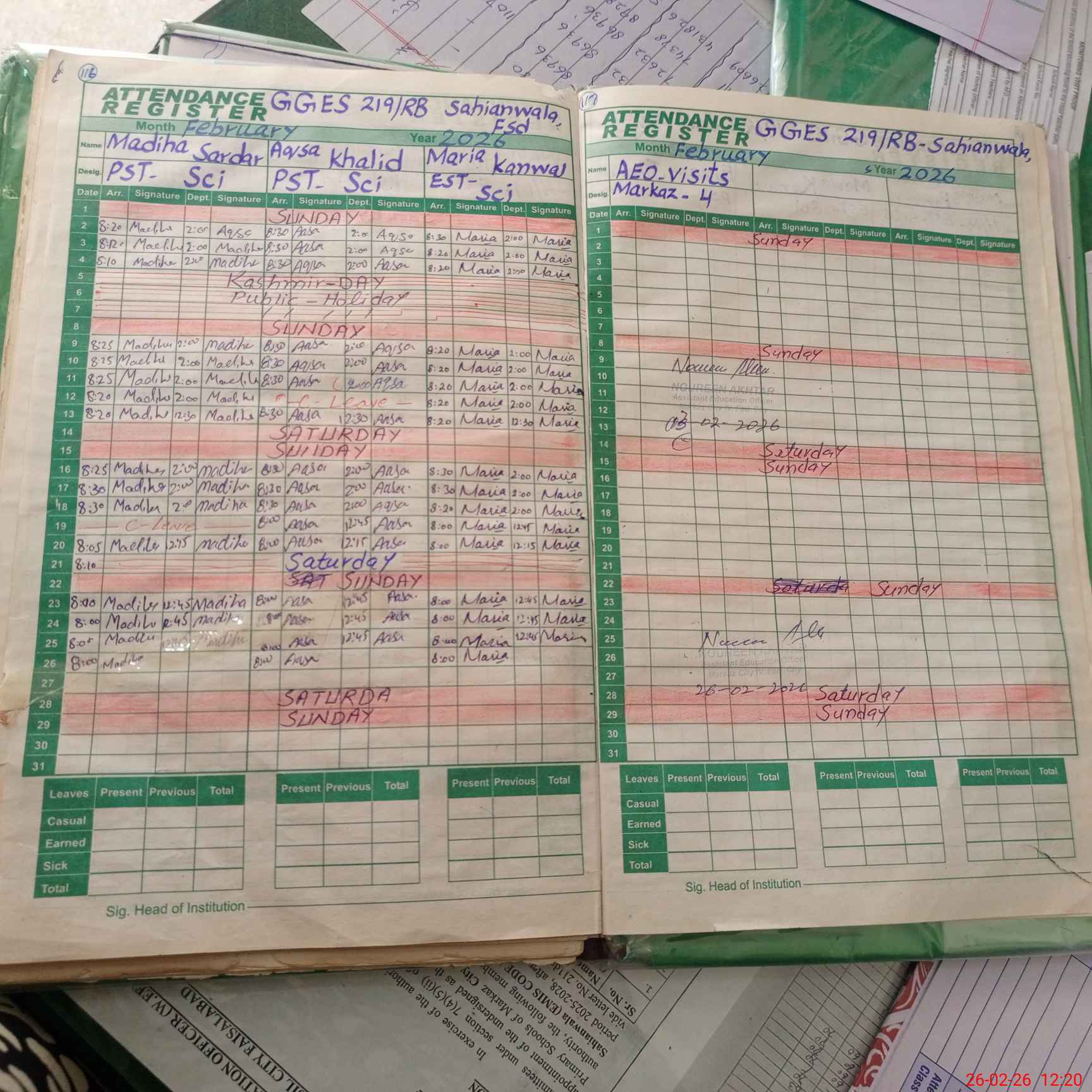 | Leave | Duty | Absent | Maternity | Medical | Ex- Pak |