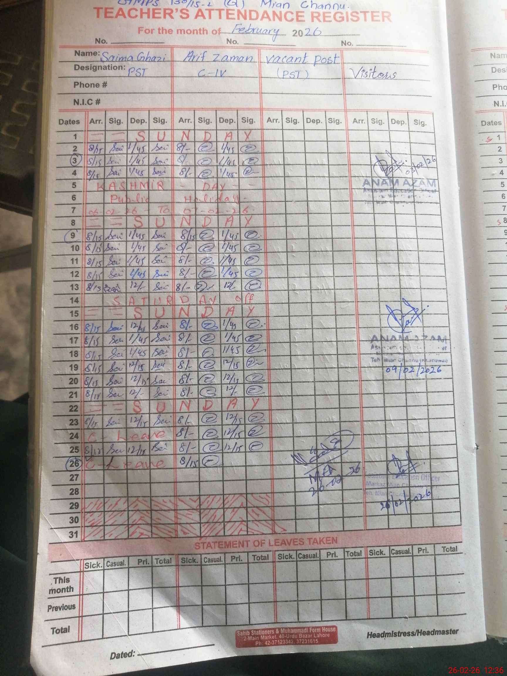 | 36**** | Sa**** Gh**** | PST | Regular | 1 | 0 | 0 | 0 | 0 | 0 | 0 | 0 | 1 | Casual |
