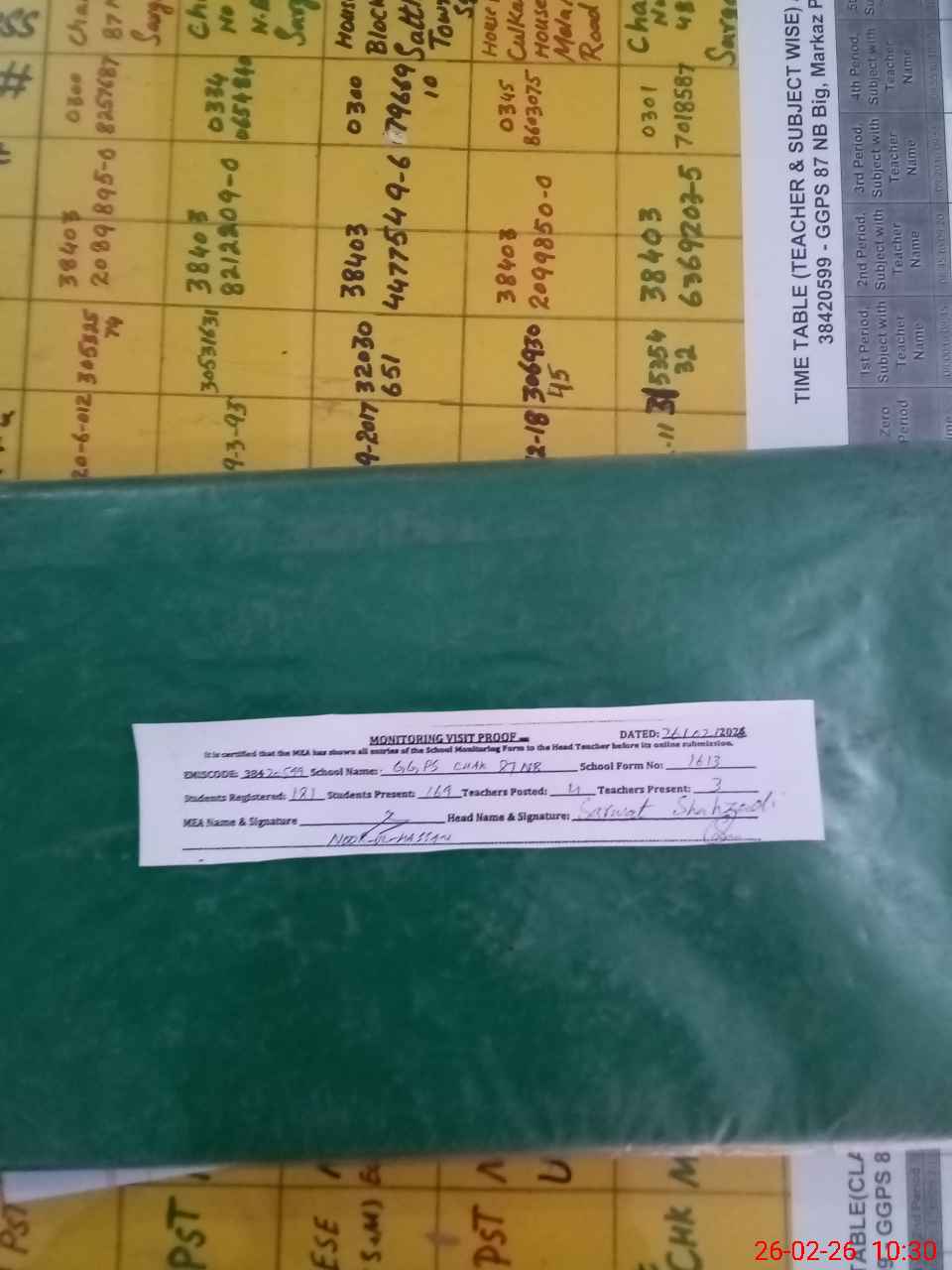 | Monitoring Date: 26-02-2026 | Start Time: 26-02-2026 10:02 AM | End Time: 26-02-2026 10:30 AM | Name of MEA: NO**** ULHA**** | |