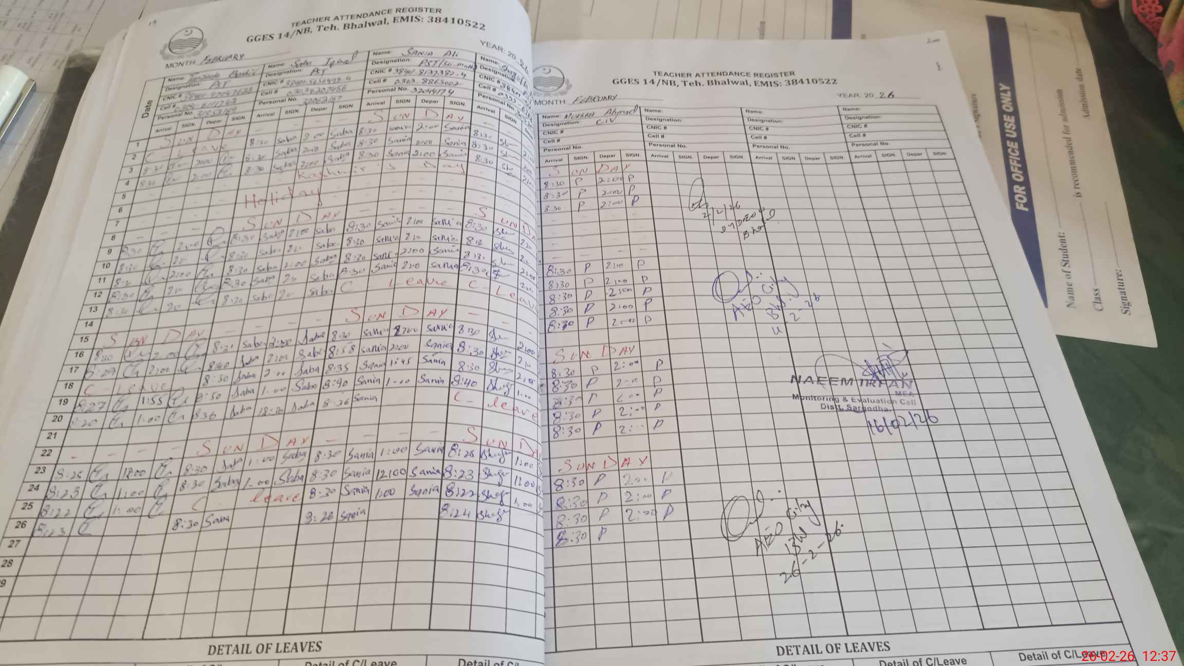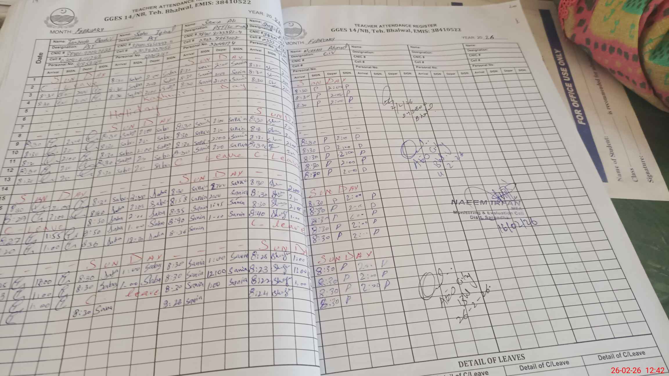| District: SARGODHA | Tehsil: BHALWAL | Markaz: BHALWAL - FEMALE | Level: Middle | |