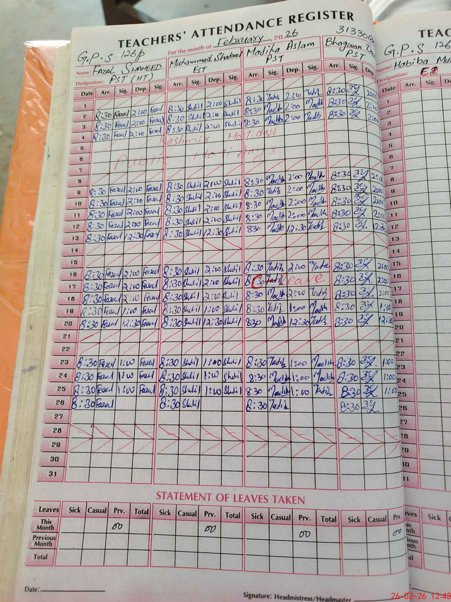 | Leave | Duty | Absent | Maternity | Medical | Ex- Pak |