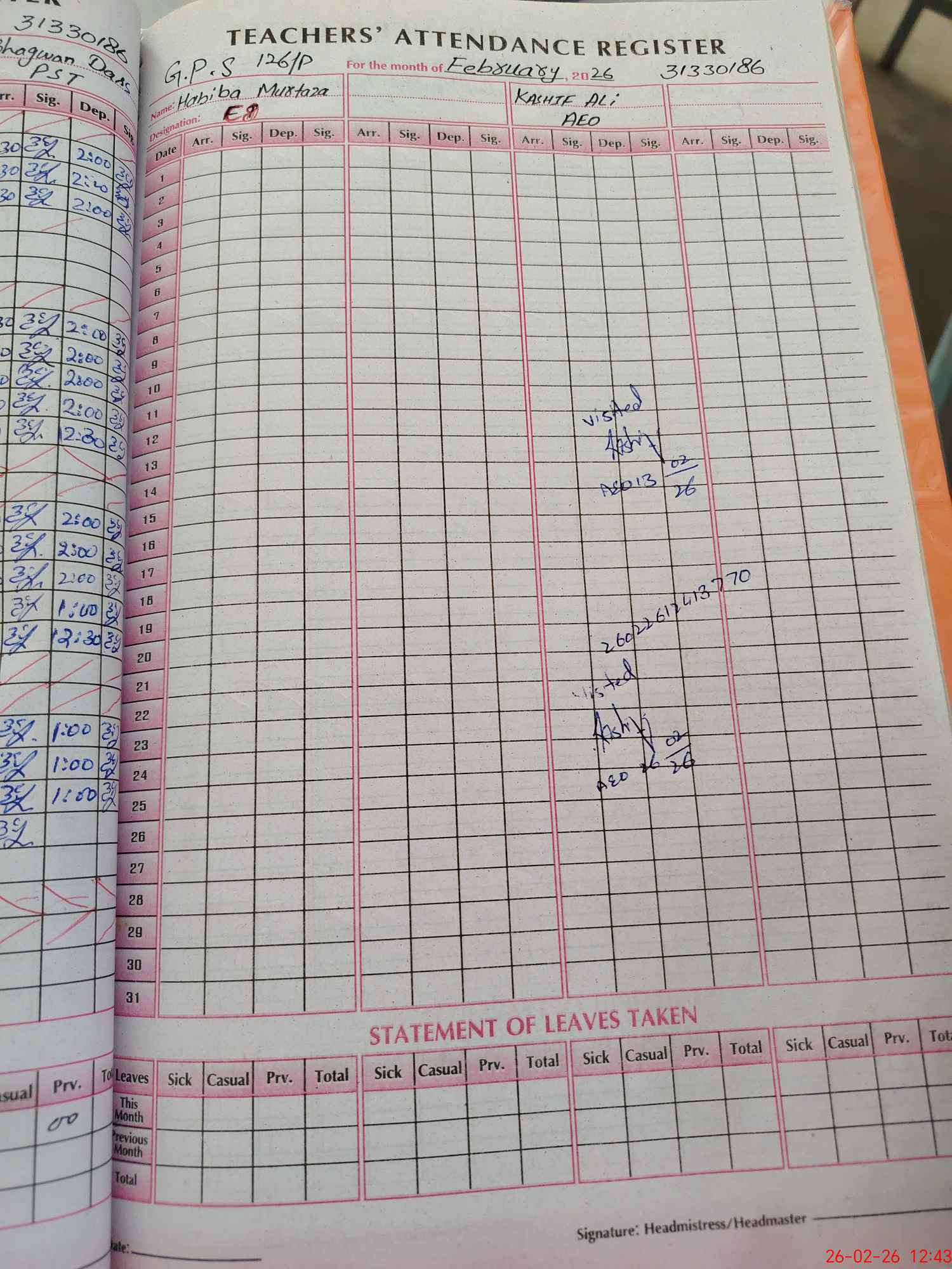 | EMIS Code: 31330186 | Name of School: GPS CHAK NO. 126/P | |||